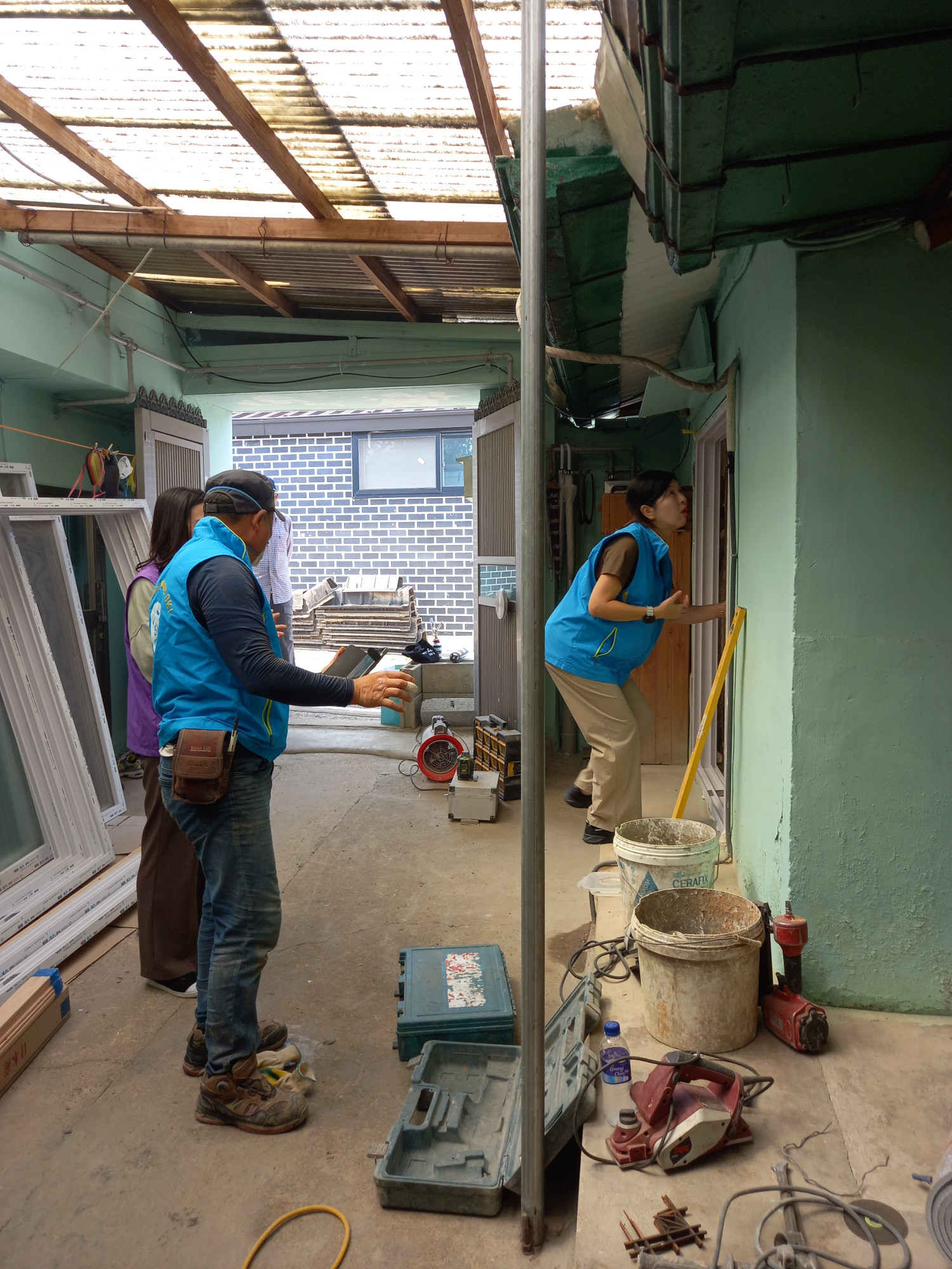 -결과: 오래된 집들은 아직도 창호지 문으로 생활하는 경우가 있습니다. 다가올 겨울을 따스하게 보내시길 바라여 문을 교체하고 있습니다.
