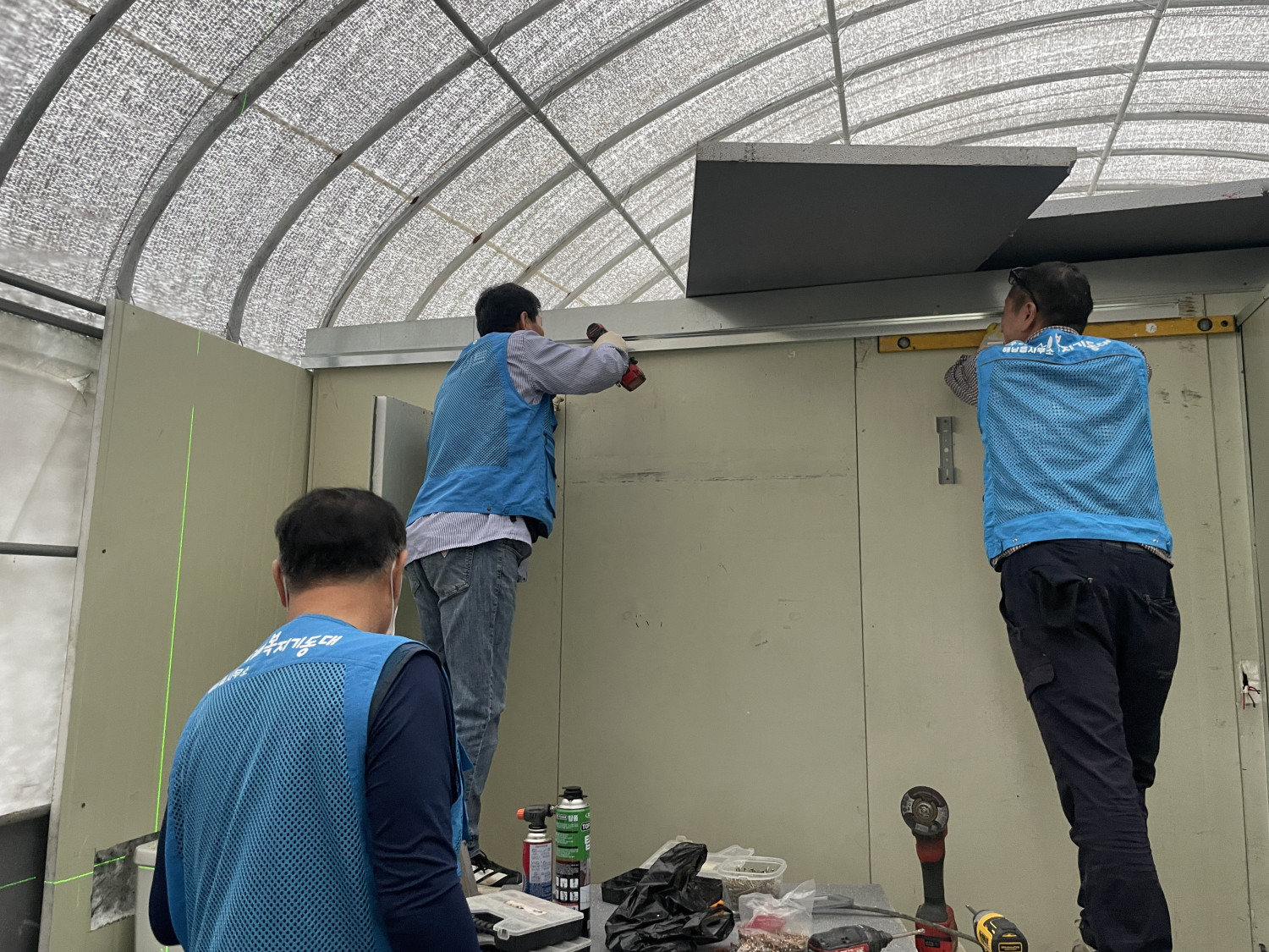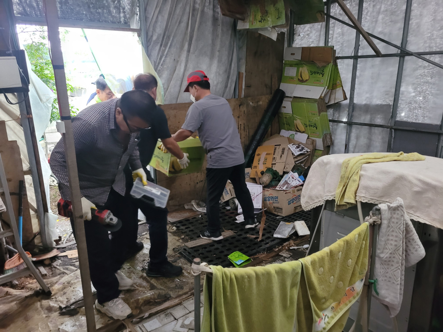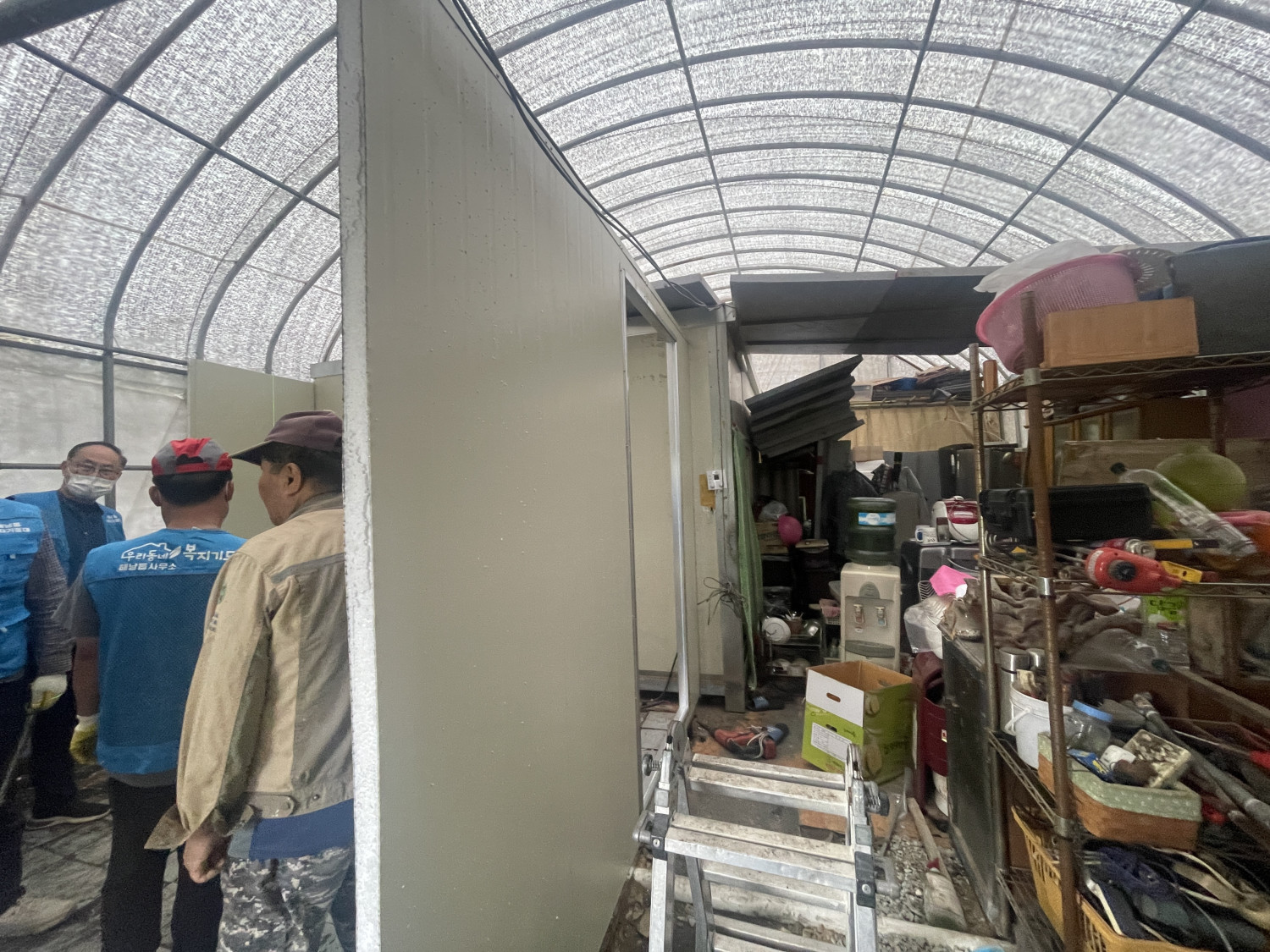 해남읍 복지기동대가 비닐하우스 내 열악한 환경에서 거주하시던 주민분을 위해 희망의 집수리 사업을 완료했습니다! 그동안 대상자분은 부엌과 화장실이 겸용된 매우 비위생적인 공간에서 생활하셨습니다. 식탁 바로 옆에 변기가 있어 위생과 삶의 질이 크게 저하될 수밖에 없었는데요. 우리 복지기동대원분들이 대상자님의 위생적인 환경 조성과 삶의 질 향상을 위해 발 벗고 나섰습니다! • 🚽공간 분리: 식탁 옆 변기가 바로 있는 부엌 겸 화장실 공용공간에 튼튼한 가벽을 설치하고 문을 달아 화장실과 생활 공간을 확실하게 분리했습니다. • 💨쾌적함 UP: 대상자님의 요구사항이었던 환풍구 설치까지 완벽하게 마무리하여 쾌적한 환경을 조성했습니다. 대상자님께서 너무나 좋아하시는 모습에 기동대원 모두 큰 보람을 느꼈습니다. 앞으로도 우리동네 복지기동대는 도움이 필요한 이웃의 곁을 지키며, 더욱 촘촘하고 따뜻한 복지를 실현하기 위해 최선을 다하겠습니다.