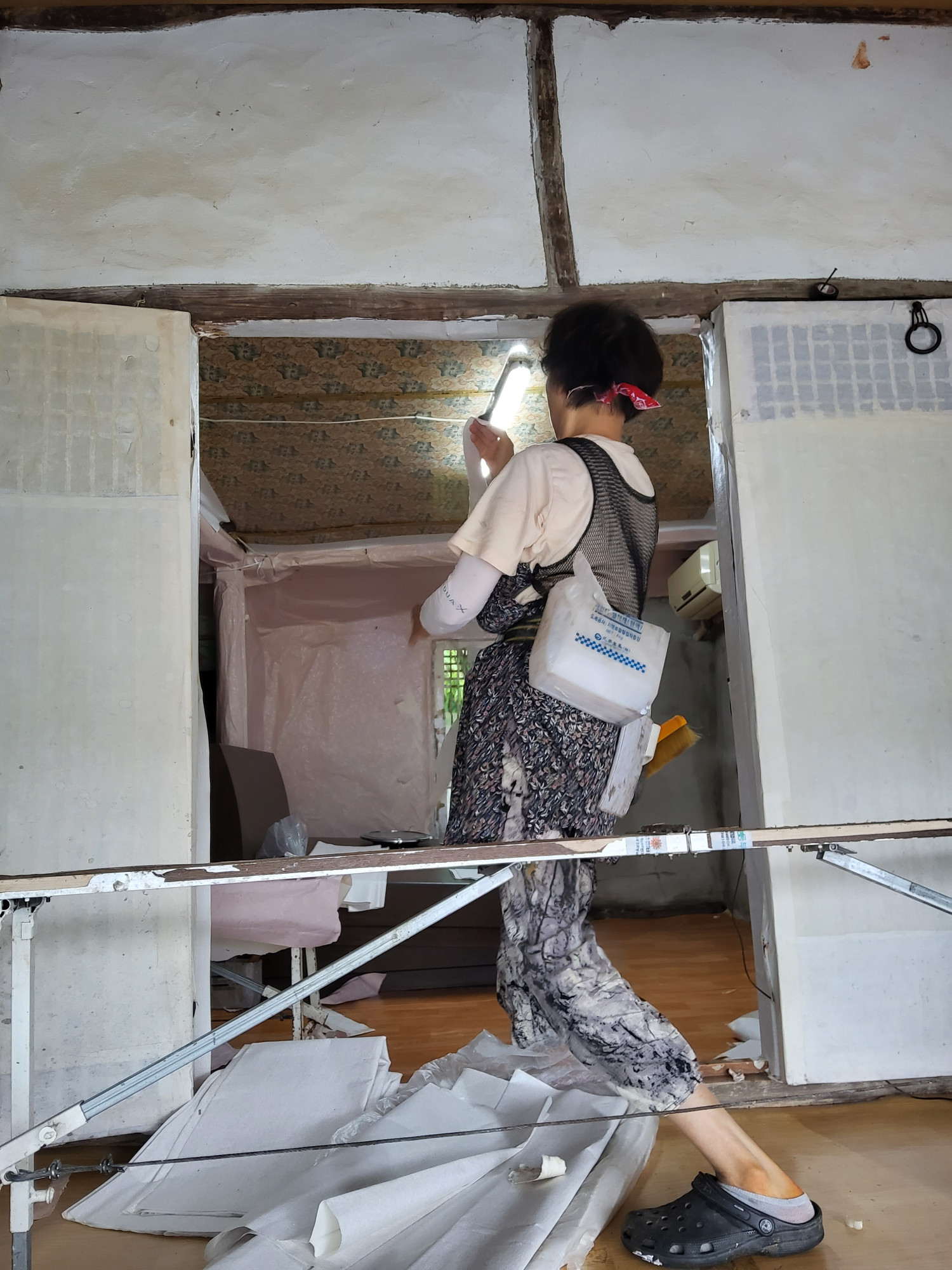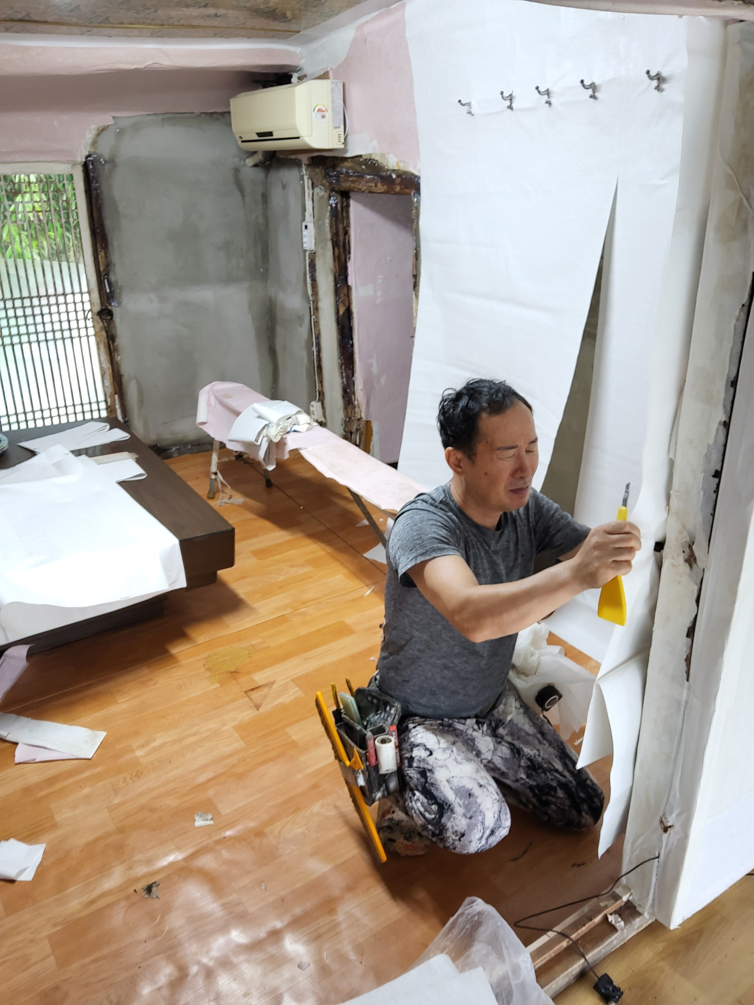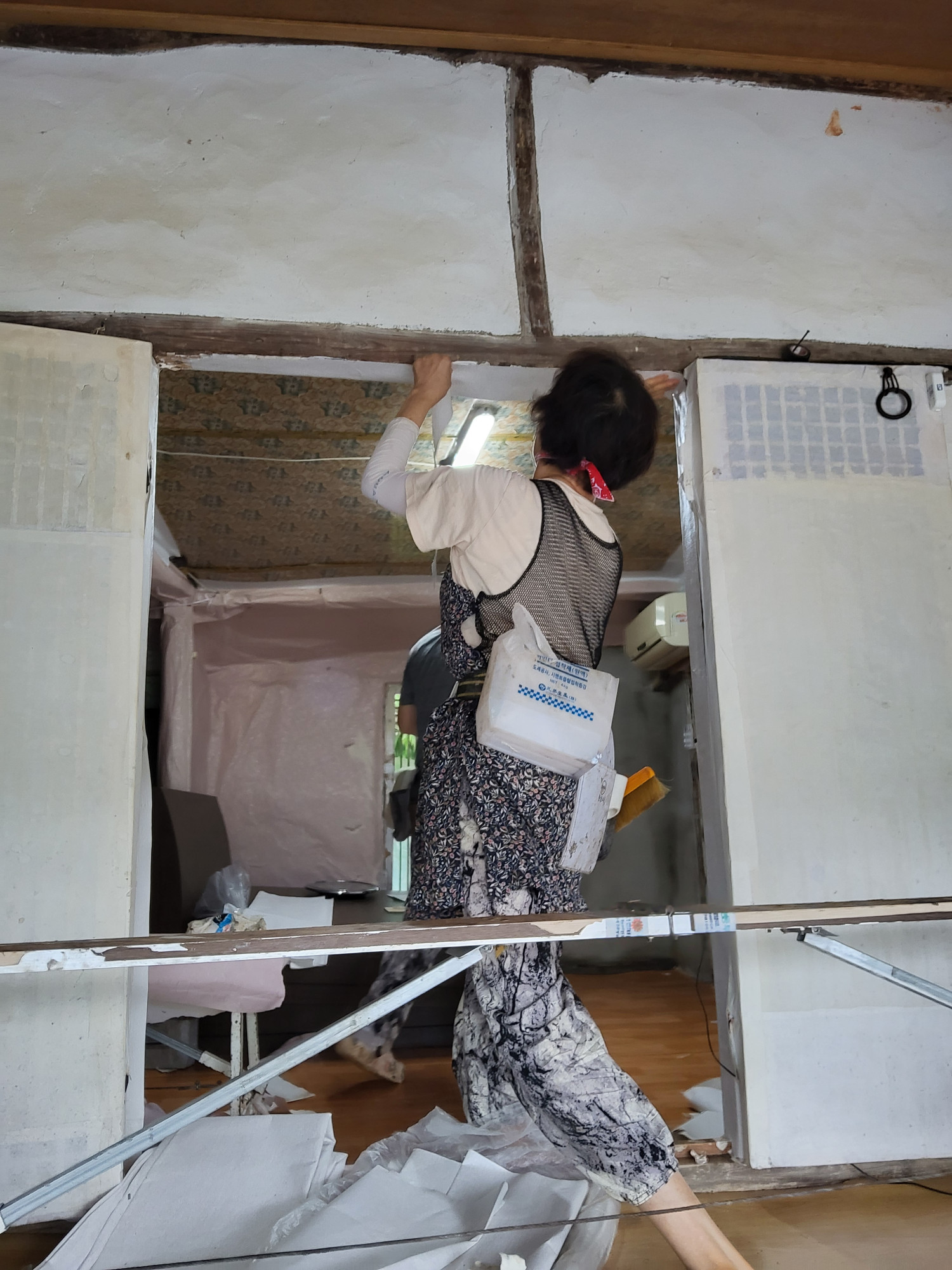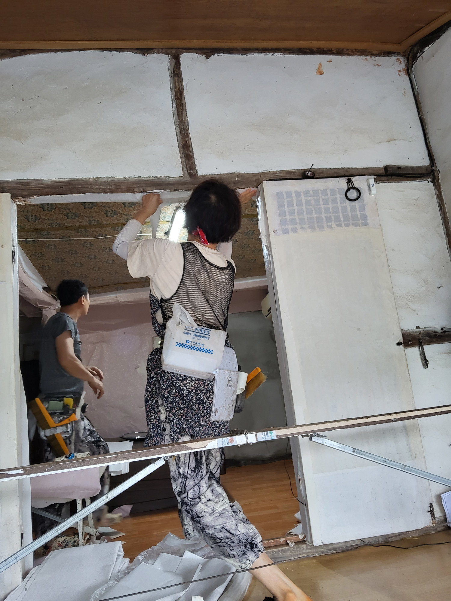 오늘은 무학마을에서 미장 작업을 마친 후, 새하얀 벽지로 도배까지 마무리했습니다.
