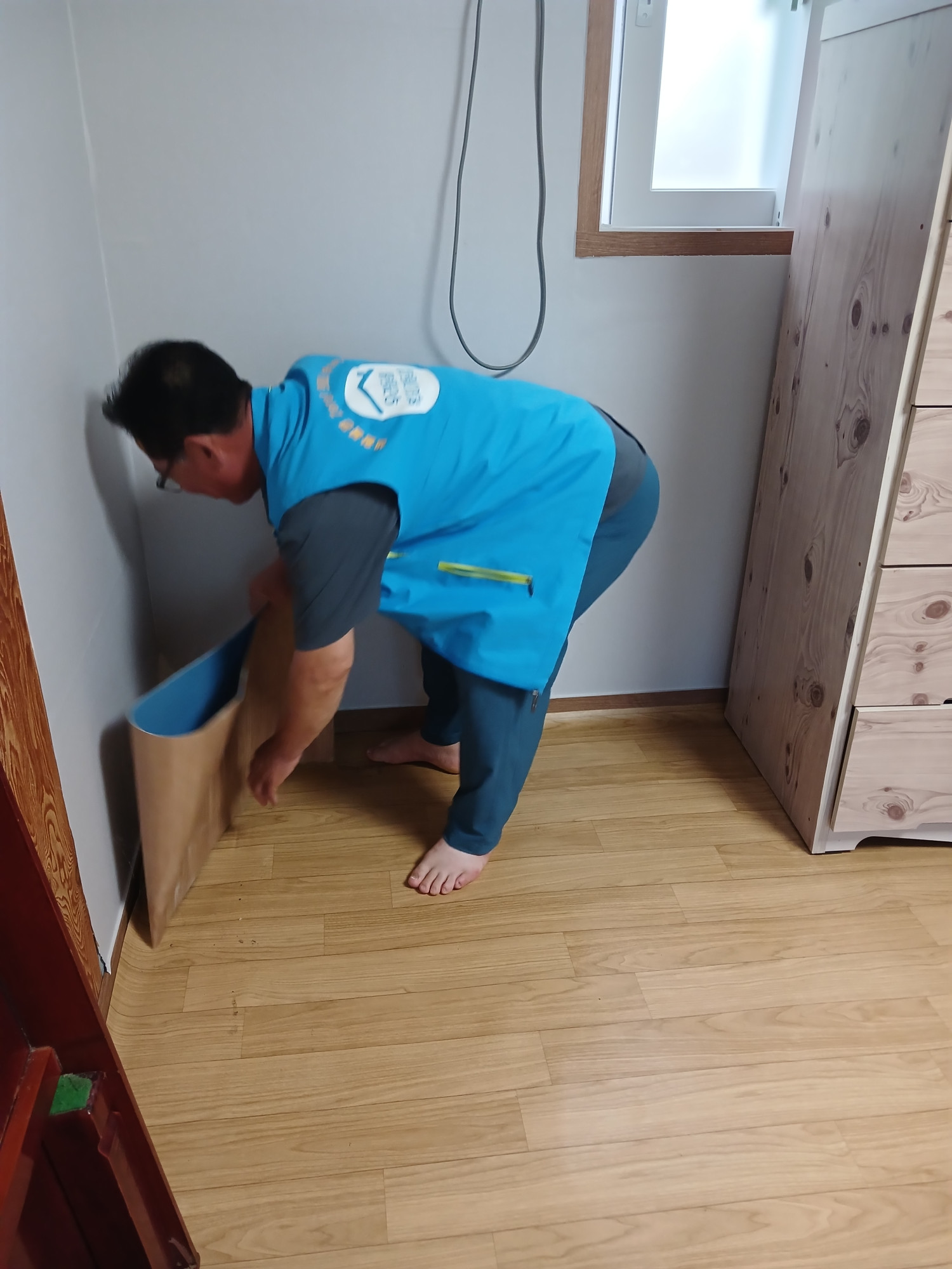 복지기동대사업으로 6월 방수 공사 완료한 장애인 어르신가구로 금일 오전 9시 누수는 없는지 확인하였습니다.