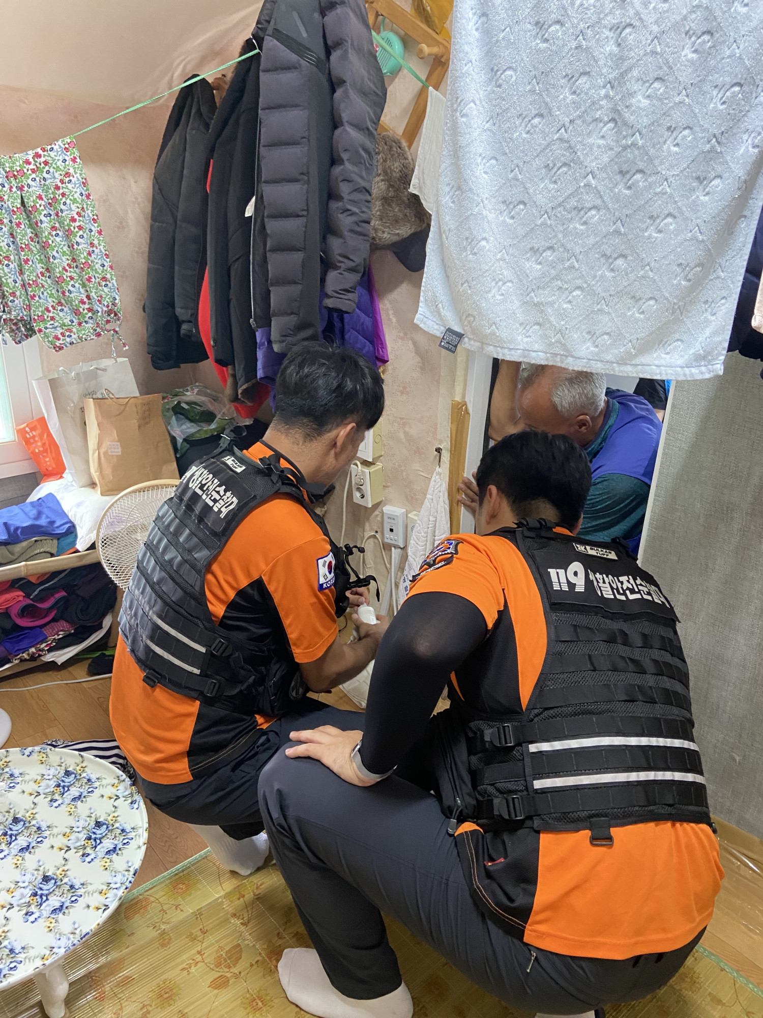 복지기동대와 119생활안전순찰대가 힘을 합쳐 화재 취약 가구를 방문하여 자동소화 멀티탭 설치와 소방시설 점검을 진행했습니다.