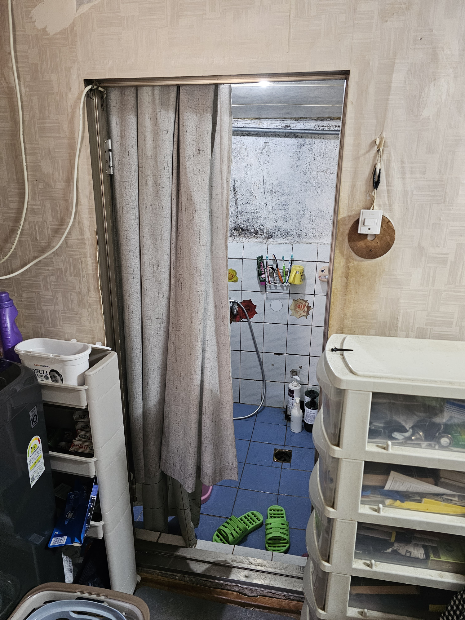 ○위기상황: 오래된 화장실 문이 고장나서 탈거하고 커튼치고 생활하고있었음