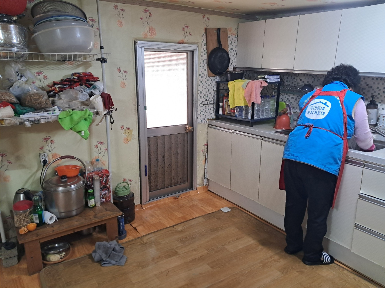 허리가 아프시고 욕실이. 멀어 싱크대 물나온 곳에서 세안도 머리 감기도 틀니도 씻고 계셨어요