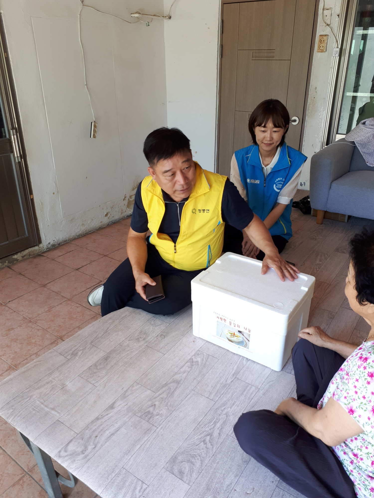 화순군 청풍면 복지기동대는 반찬 공급이 어려운 여름철에 장애 또는 질병이 있는 독 거노인 및 취약계층을 대상으로 관내소재 식당을 선정하여 물김치 및 밑반찬을 제공하는 사업을 진행했습니다