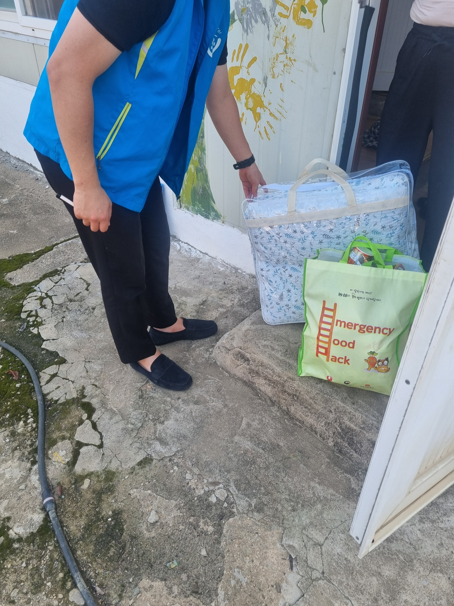 복지기동대는 이번 집중호우로 인해 주택 및 농작물에 피해를 입은 취약가구를 대상으로 현장 방문을 실시하고, 긴급 지원이 필요한 가구에 구호물품을 전달하였다. 이불, 라면 등 생필품으로 구성된 구호물품을 직접 전달하며 대상자의 피해 상황을 파악하고, 2차 피해 예방 및 추가 지원 여부를 검토하였다. 갑작스러운 재난 상황 속에서도 기동대는 신속한 대응을 통해 주민의 안전과 생활 안정을 지원하였다.