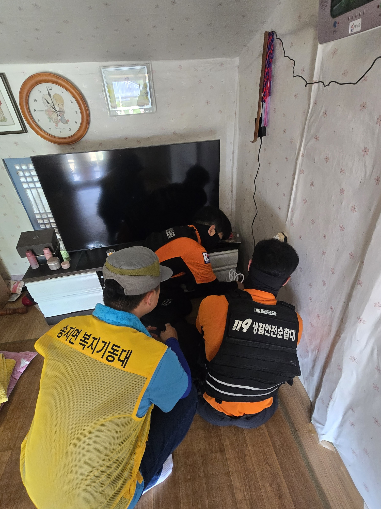 송지면 복지기동대와 119생활안전순찰대가 협력하여 화재취약가구 전기안전점검을 실시했습니다~