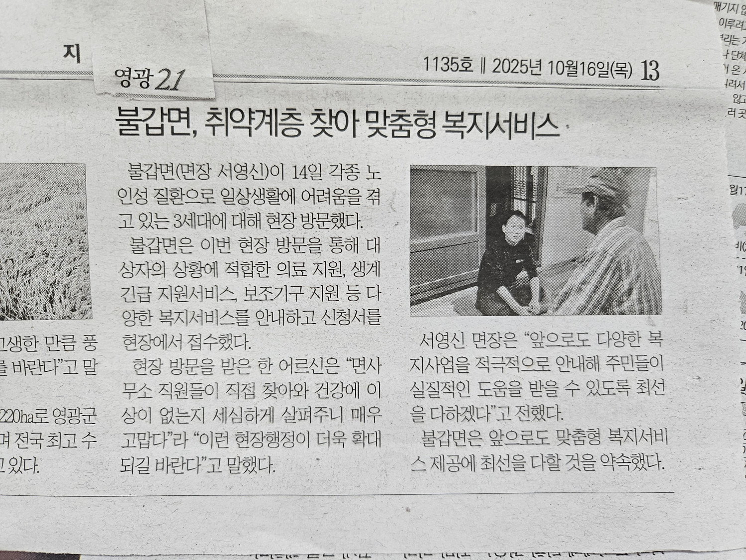 [영광군 불갑면]취약계층, 현장방문으로 맞춤형복지서비스 지원강화