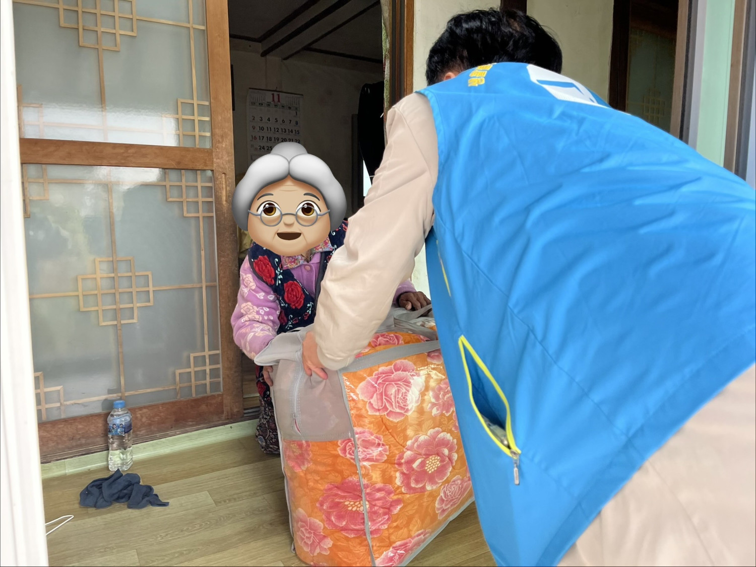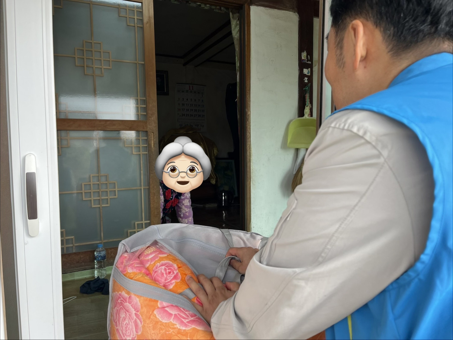 어르신께는 겨울 극세사 이불을 전해드렸습니다.