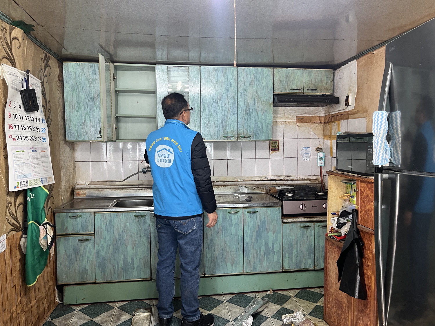 의족과 휠체어를 사용하시는 장애인 가구 댁에 방문했습니다. 싱크대가 매우매우 오래돼 위생상 문제가 있었습니다. 게다가 누수도 있어 거동이 불편하신 어르신께는 위험한 상황이었습니다.