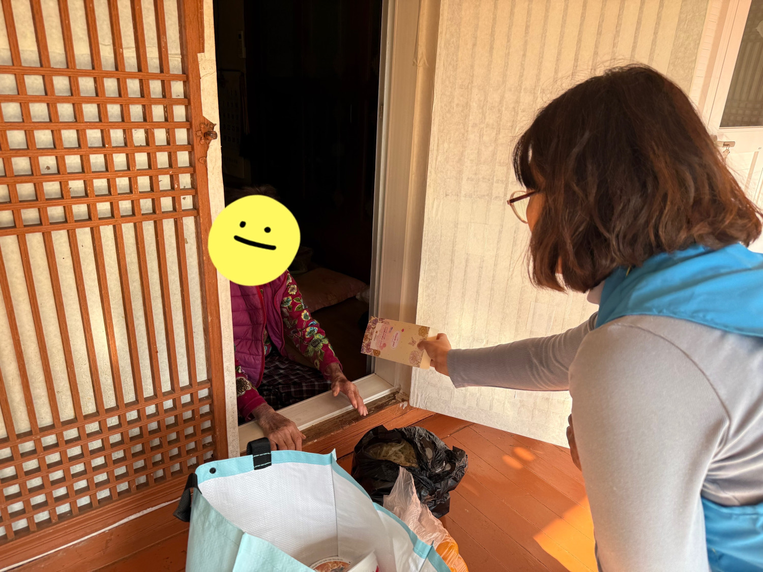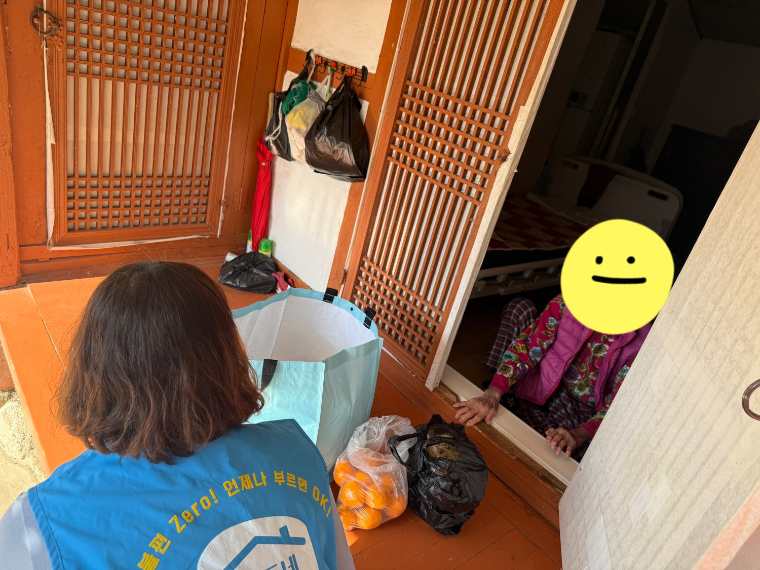 *상황: 독거 노인의 안부를 살피고 동절기 난방 점검을 시행하고 사용 관련 안전수칙을 안내함.또한 생필품 전달함.