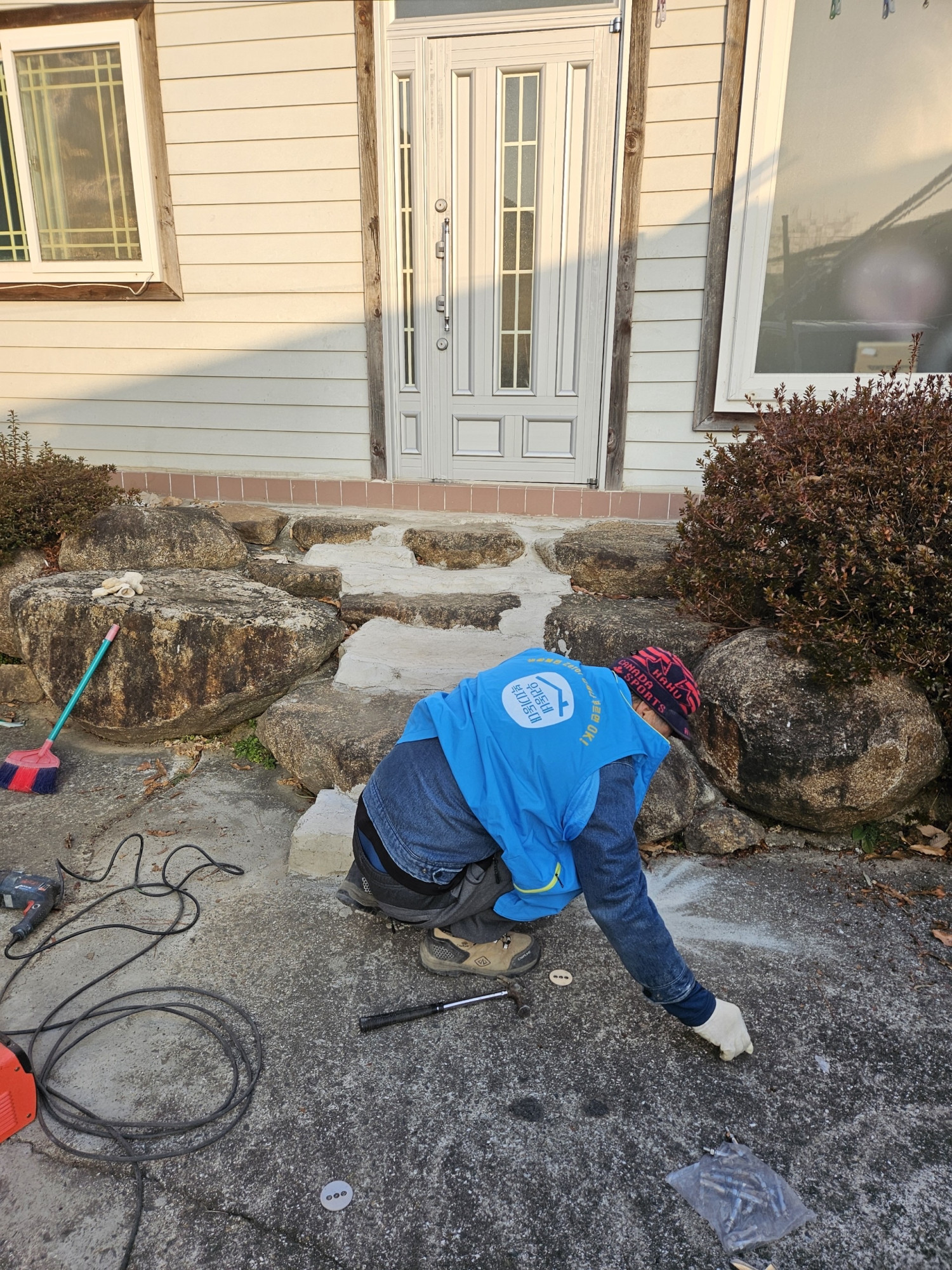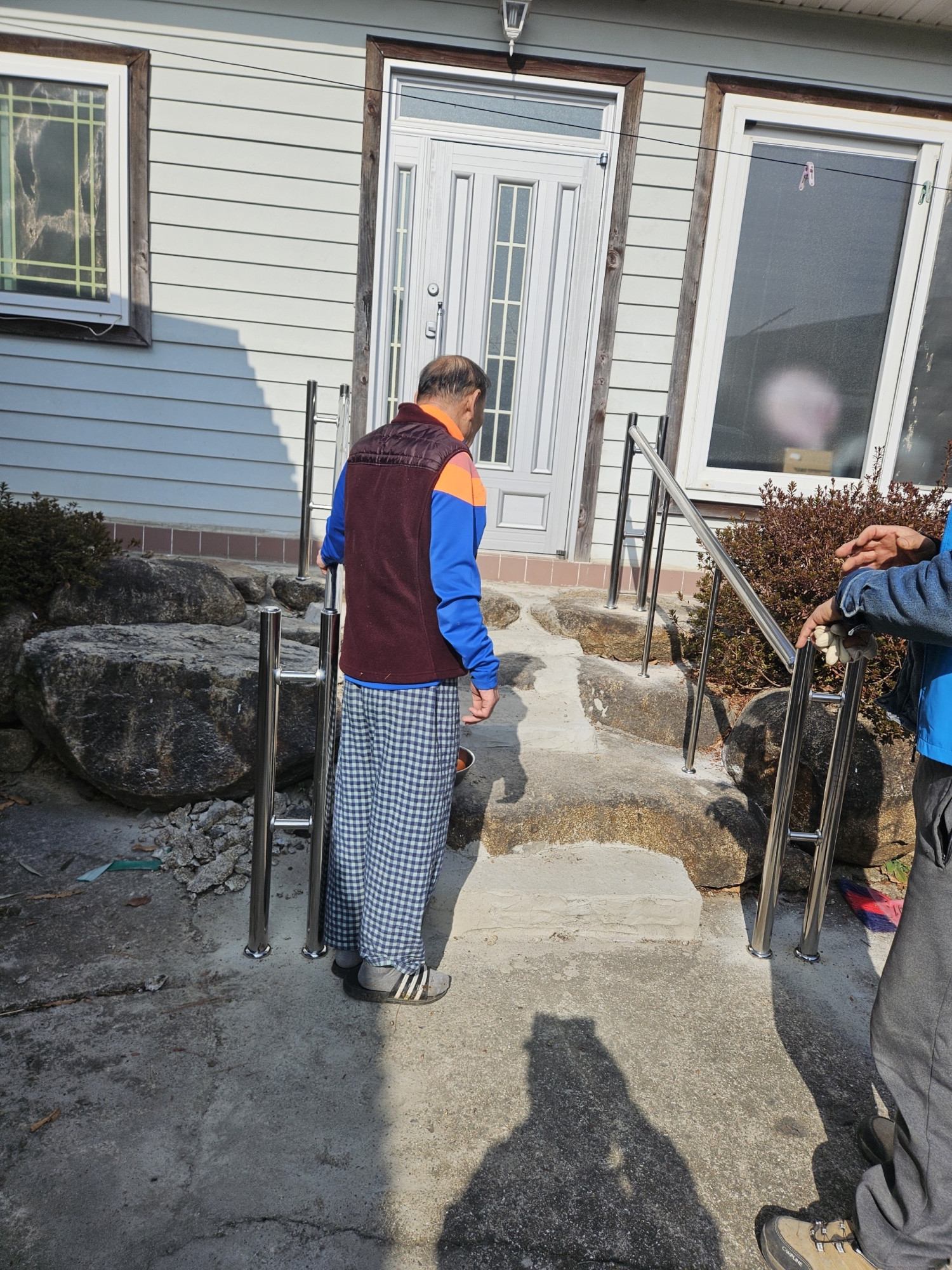 *상황: 대상자는 1년전 발목 골절로 수술 후 보행이 느리며 난간을 짚고 움직이는 등 불안정한 상태임. 자택 현관 앞 돌계단이 폭우 혹은 폭설 시 미끄러워 낙상 사고 위험이 있으며 넘어진 적도 있다고 함. 이에 대상자 안전 확보를 위해 안전 손잡이를 설치하는 공사를 시행함.