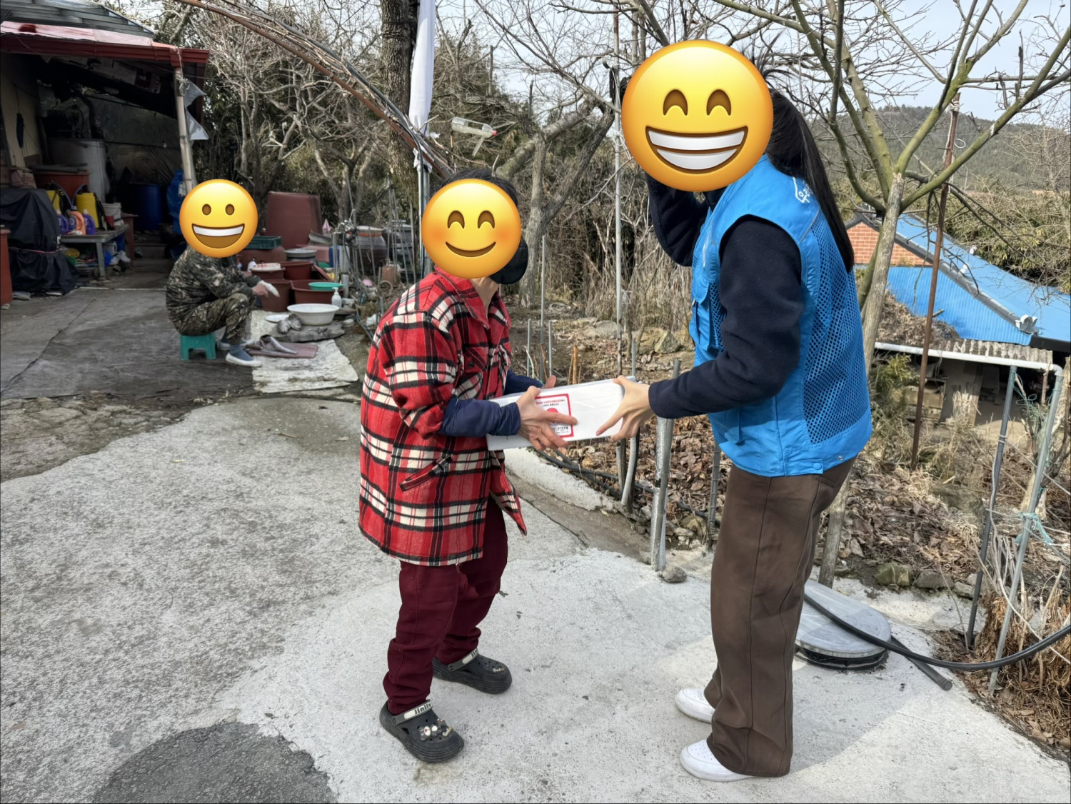 2. 6.(금) 저희는 지역 내 취약계층 가구를 방문해 안부를 여쭙고, 건강한 겨울나기를 위한 대한한돈협회 해남지부에서 기부한 한돈과 청정수산에서 기부한 김세트를 전달해 드렸습니다. 🐷🌊
