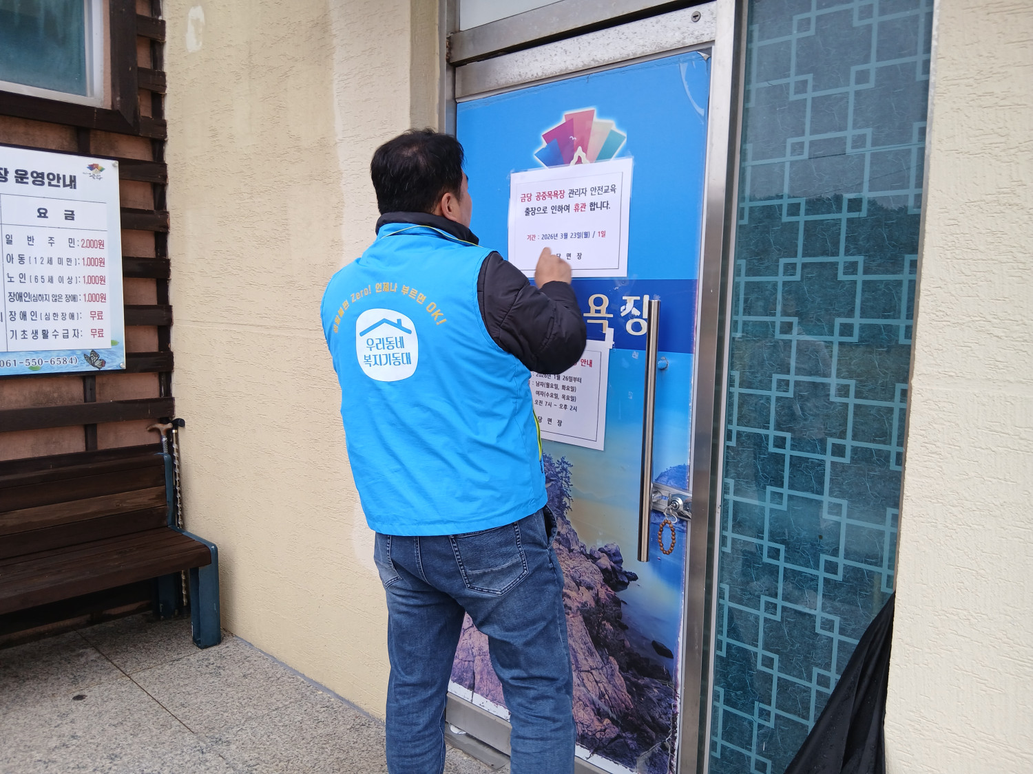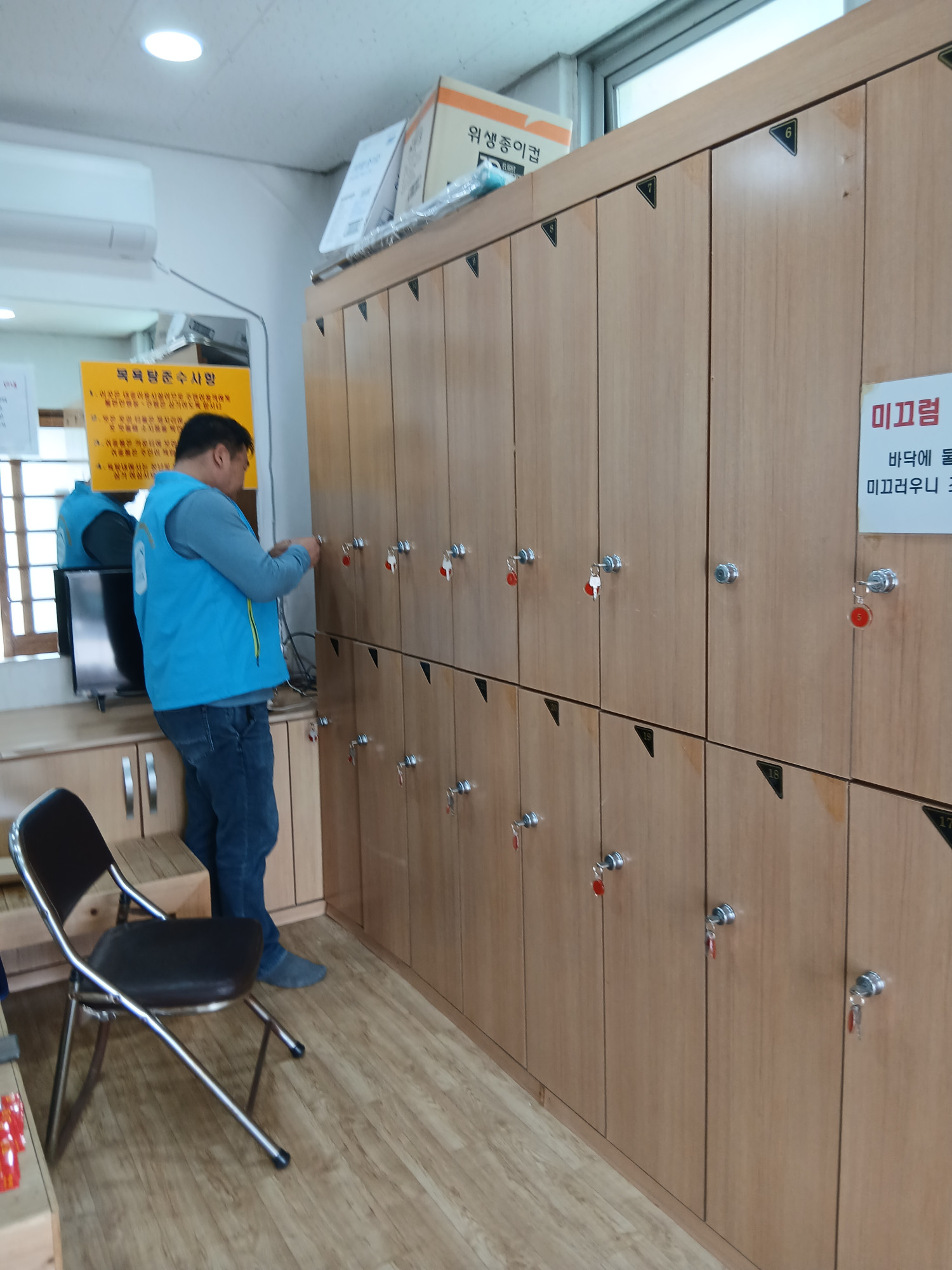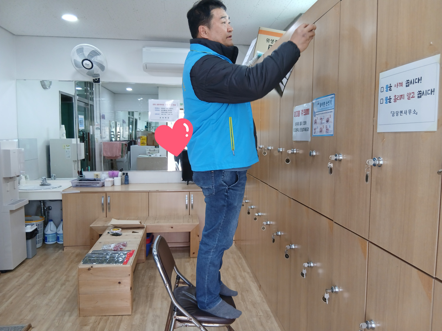 * 출장내용 : 공중목욕장 내부에 있는 사물함 정비 및 임시휴관일에 따른 안내문 부착등 안전하고 쾌적한 시설 운영을 위해 안내 및 홍보함.