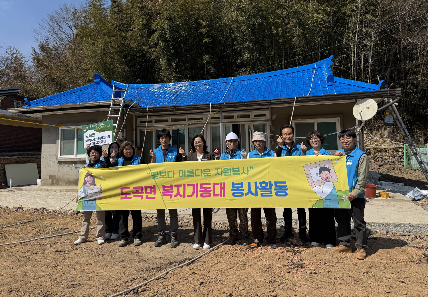오늘은 생활불편개선사업으로 지붕 페인트 및 방수작업을 위해 도곡면 복지기동대가 출동하였습니다. 낡고 색이 바래 빗물이 새던 지붕이 파란 페인트를 만나 새롭게 다시 태어났습니다. 도곡면 복지기동대가 직접 현장을 살피고 함께 힘을 모아 생활불편개선사업을 진행했습니다. 또한 대상자는 100세의 고령 어르신으로 혹시 불편하신 곳은 없는지 복지기동대가 안부를 살피고 생활 속 불편사항도 함께 점검하였습니다. 앞으로도 우리 주민을 위해 앞장서 발로 뛰는 도곡면 복지기동대가 되겠습니다💕