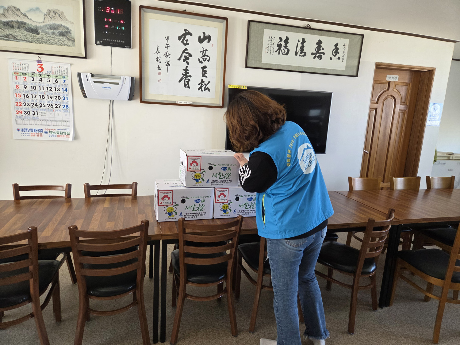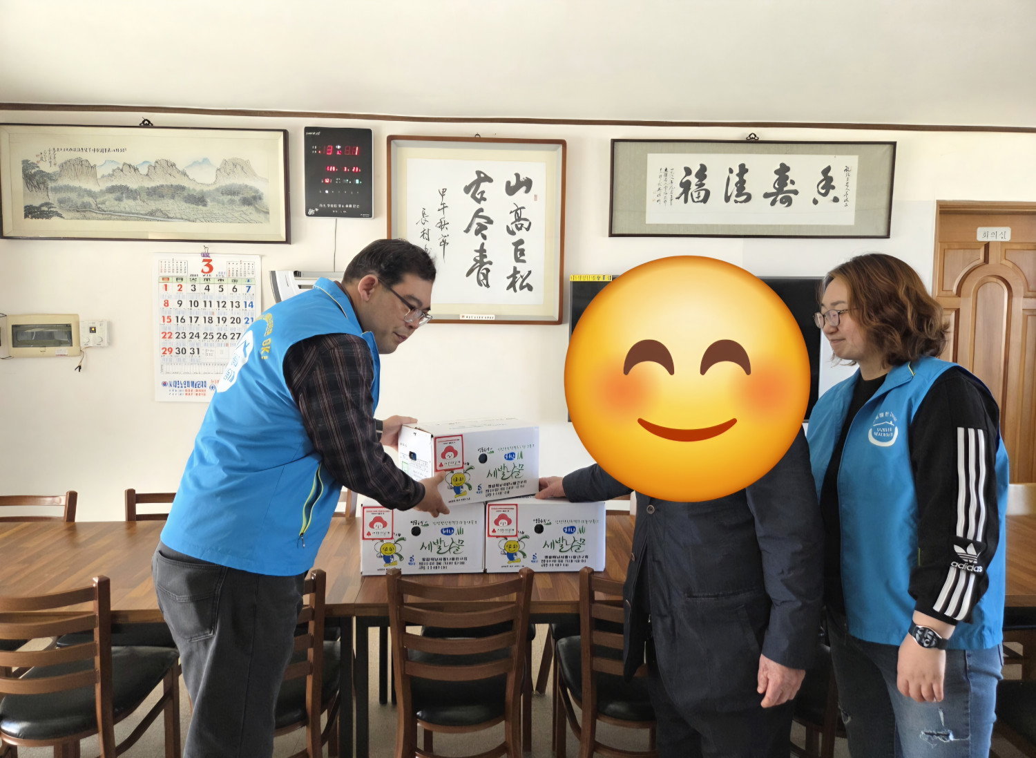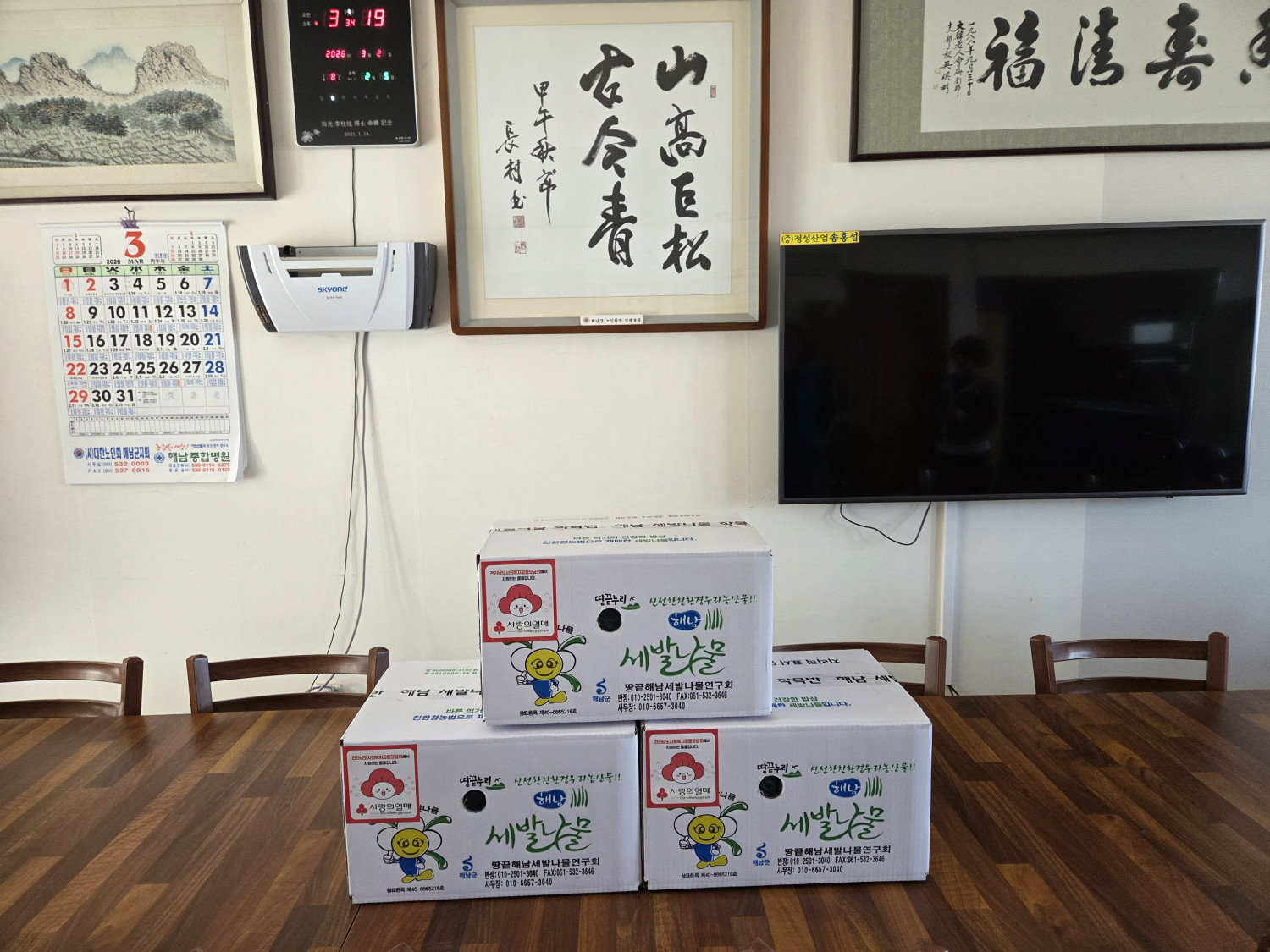 해남세발나물영농조합법인에서 기탁해주신 세발나물을 북일면 복지기동대가 면분회에 전달해드렸습니다😀