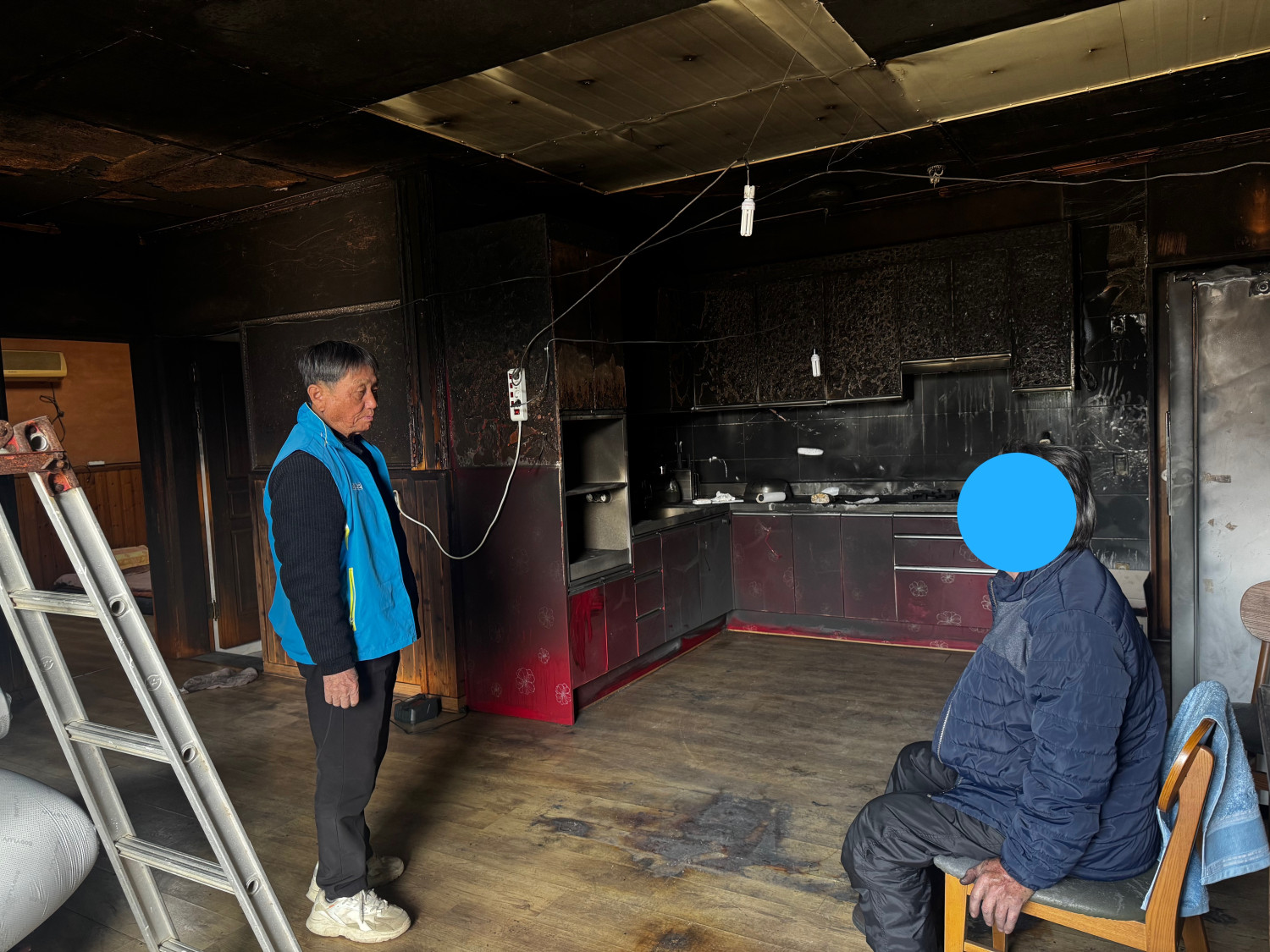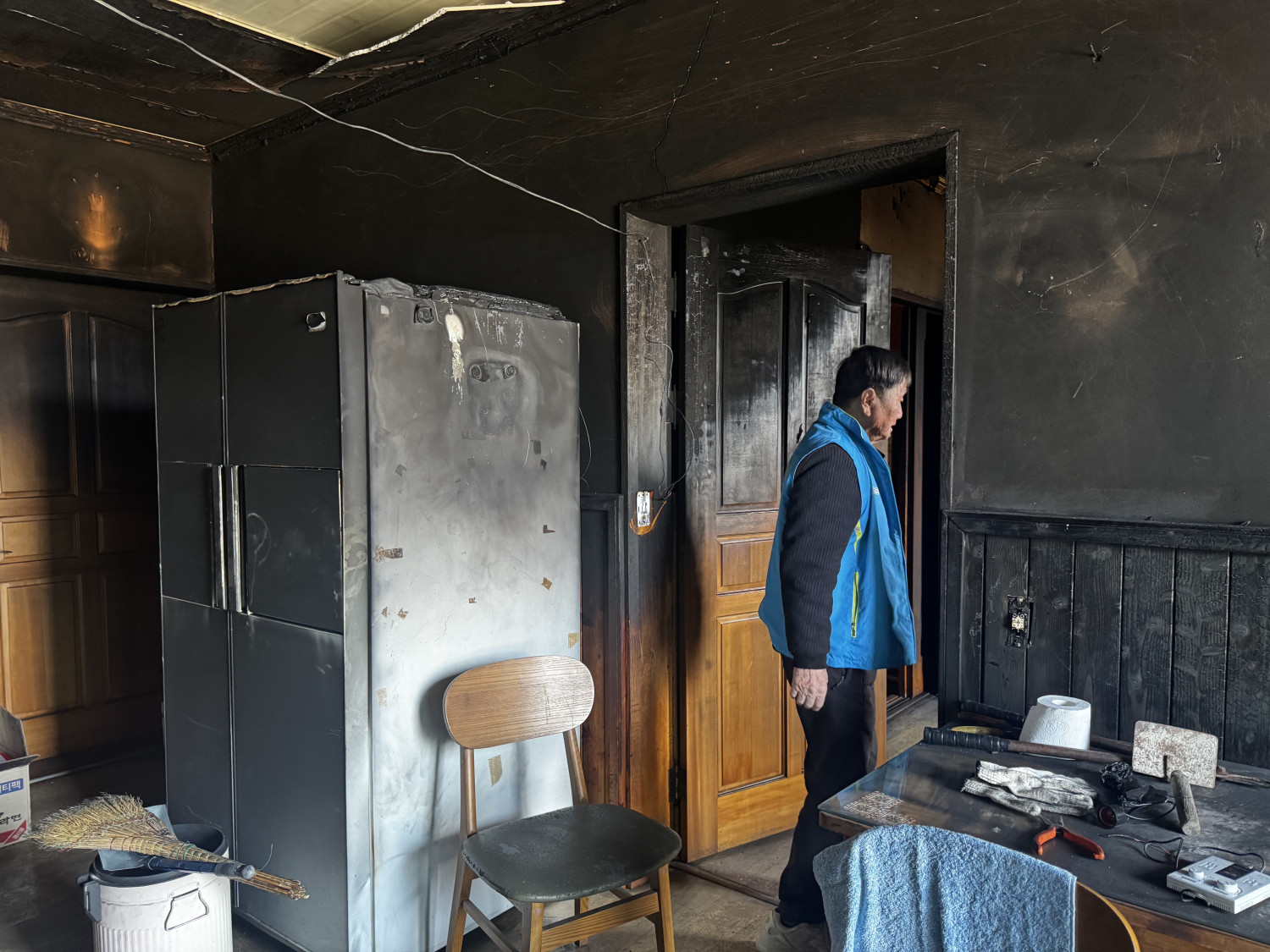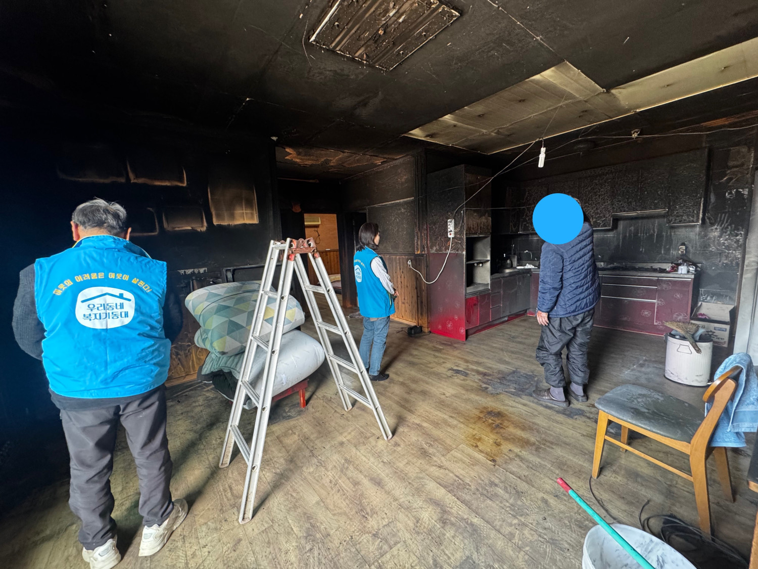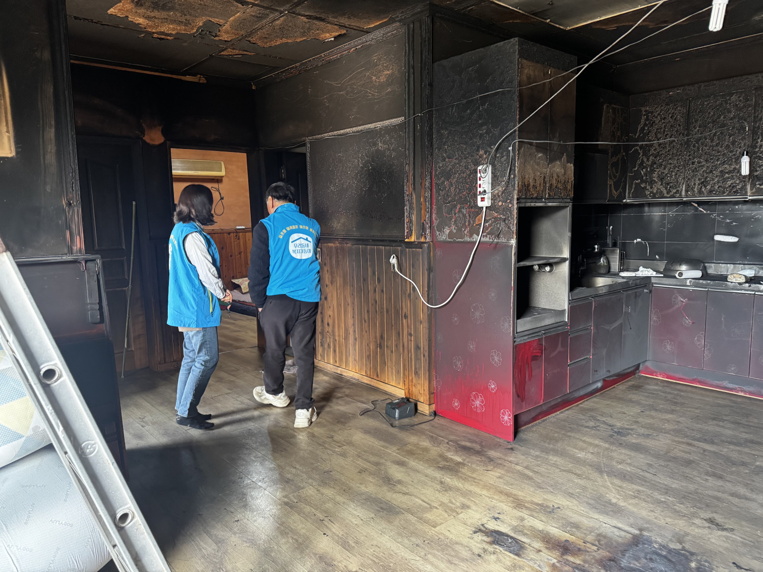우리동네복지기동대는 화재가 발생한 가구를 방문하여 대상자의 안부를 확인하였다. 현장 확인 결과, 내부는 화재로 인한 그을음과 훼손이 심각하여 정상적인 생활이 어려운 상태로 확인되었다.