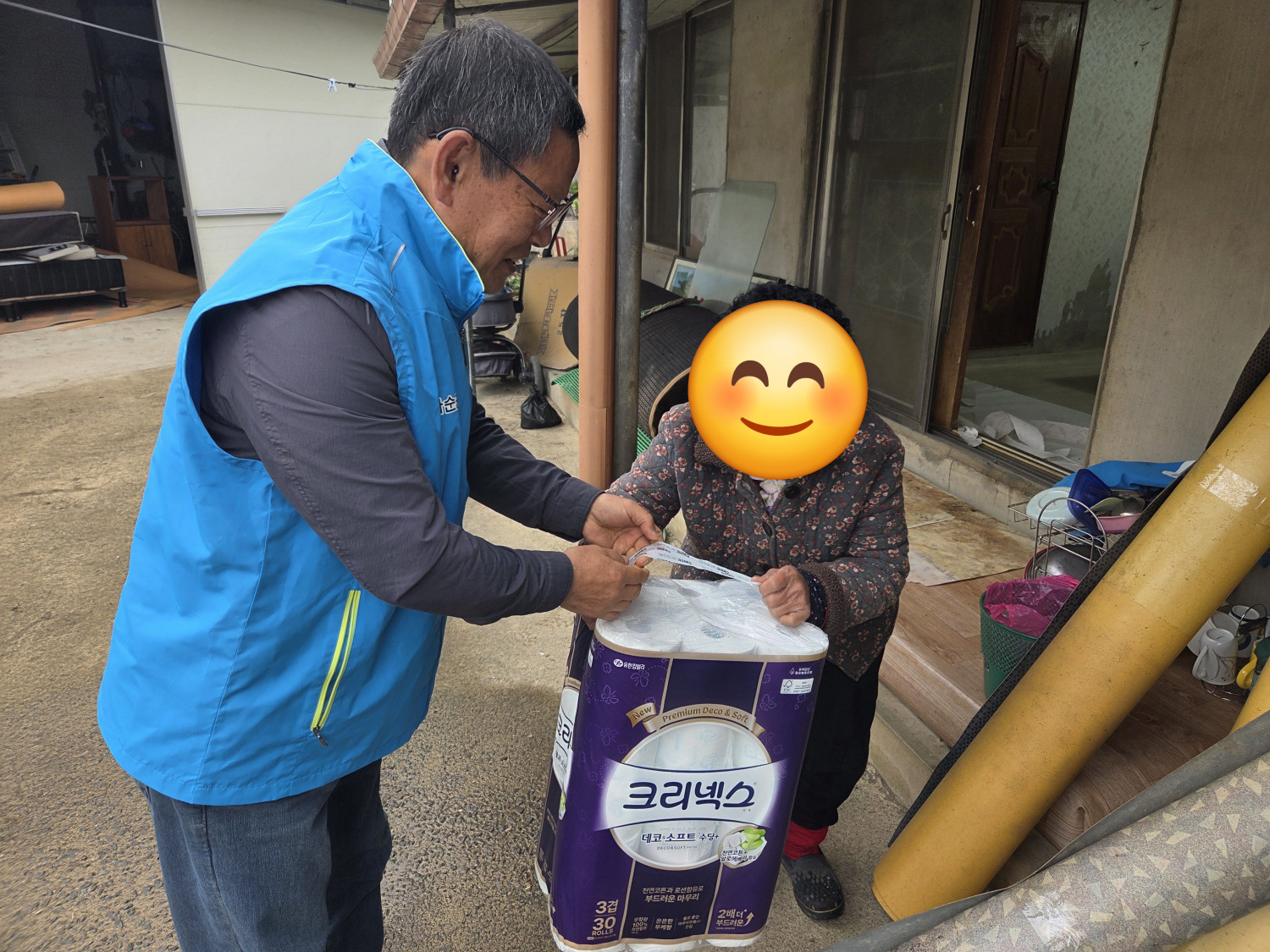 오늘도 두손 무겁게 화장지를 들고 복지기동대가 현장으로 출동했습니다.