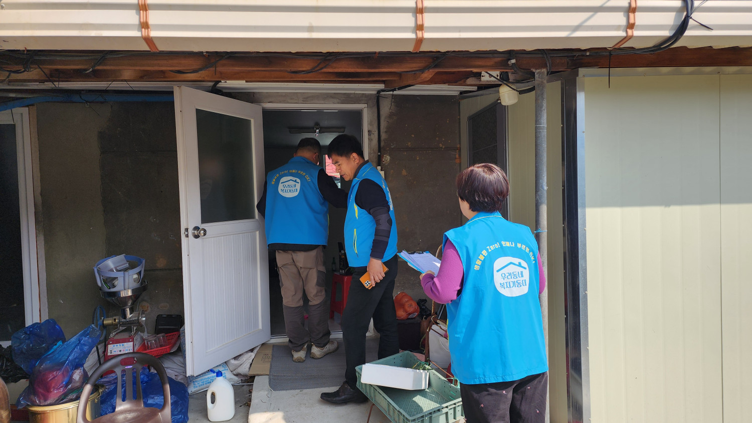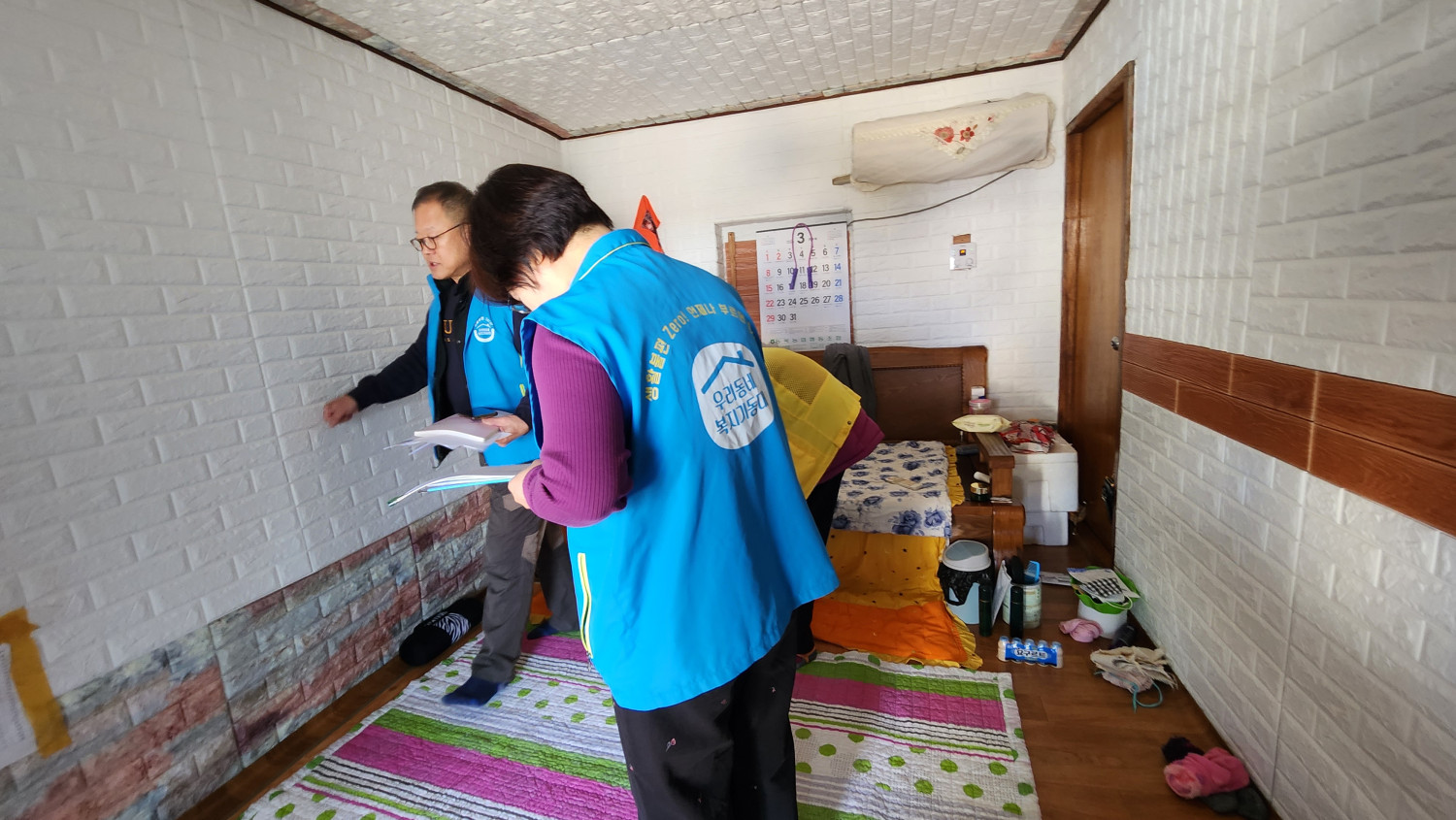ㅡ내용:동복면 복지기동대는 취약계층생활불편개선사업을 진행하기위해 사전조사를했다. 대상가정에 한 어르신은 이곳 저곳 불편한곳을 말씀하시고 안부를물어주어서 편리한생활이 예상된다며 즐거워하셨다