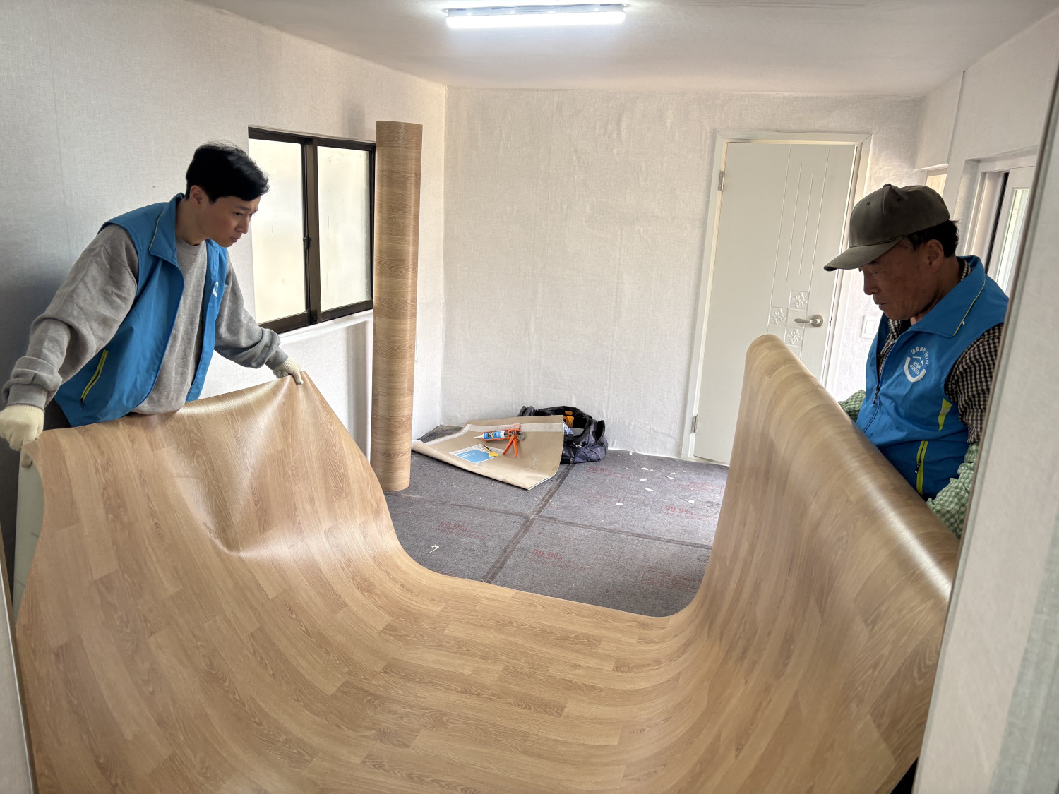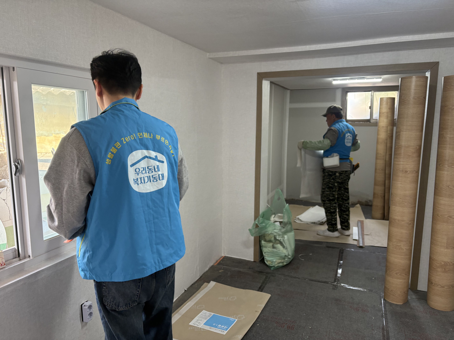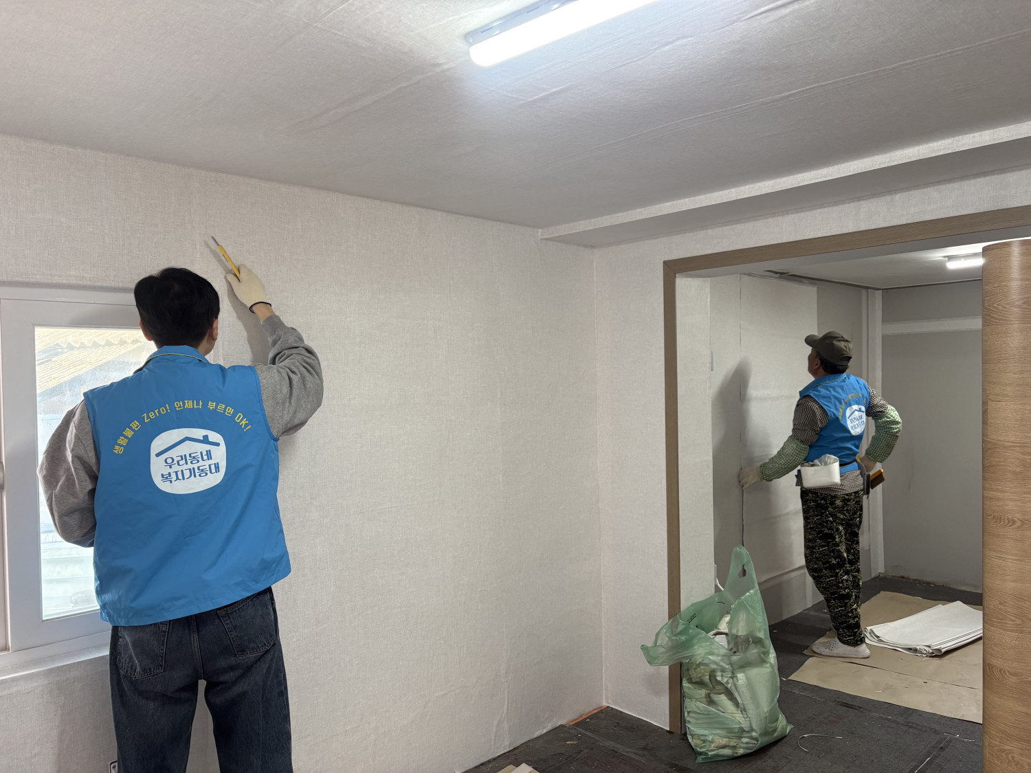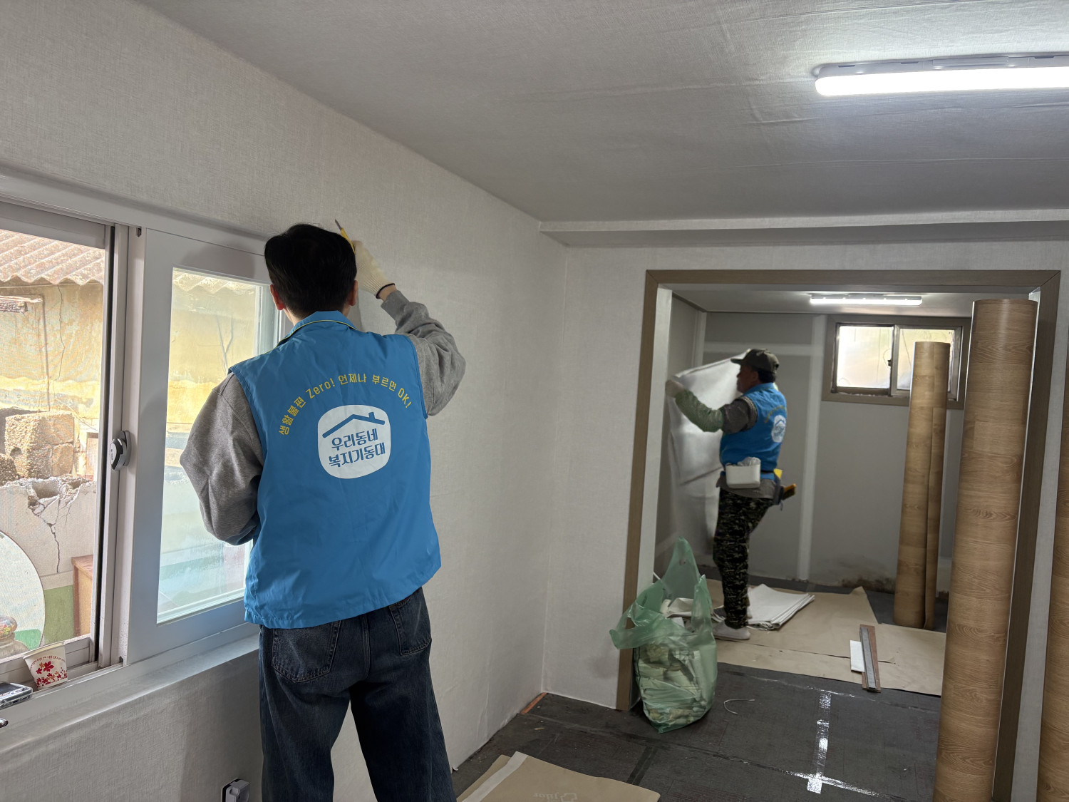 찢어지고 낡은 벽지를 뜯고, 장판이 부분부분만 깔려있던 곳을 정리하고 새로운 벽지와 새 장판을 깔아 쾌적한 환경을 만들어봅니다