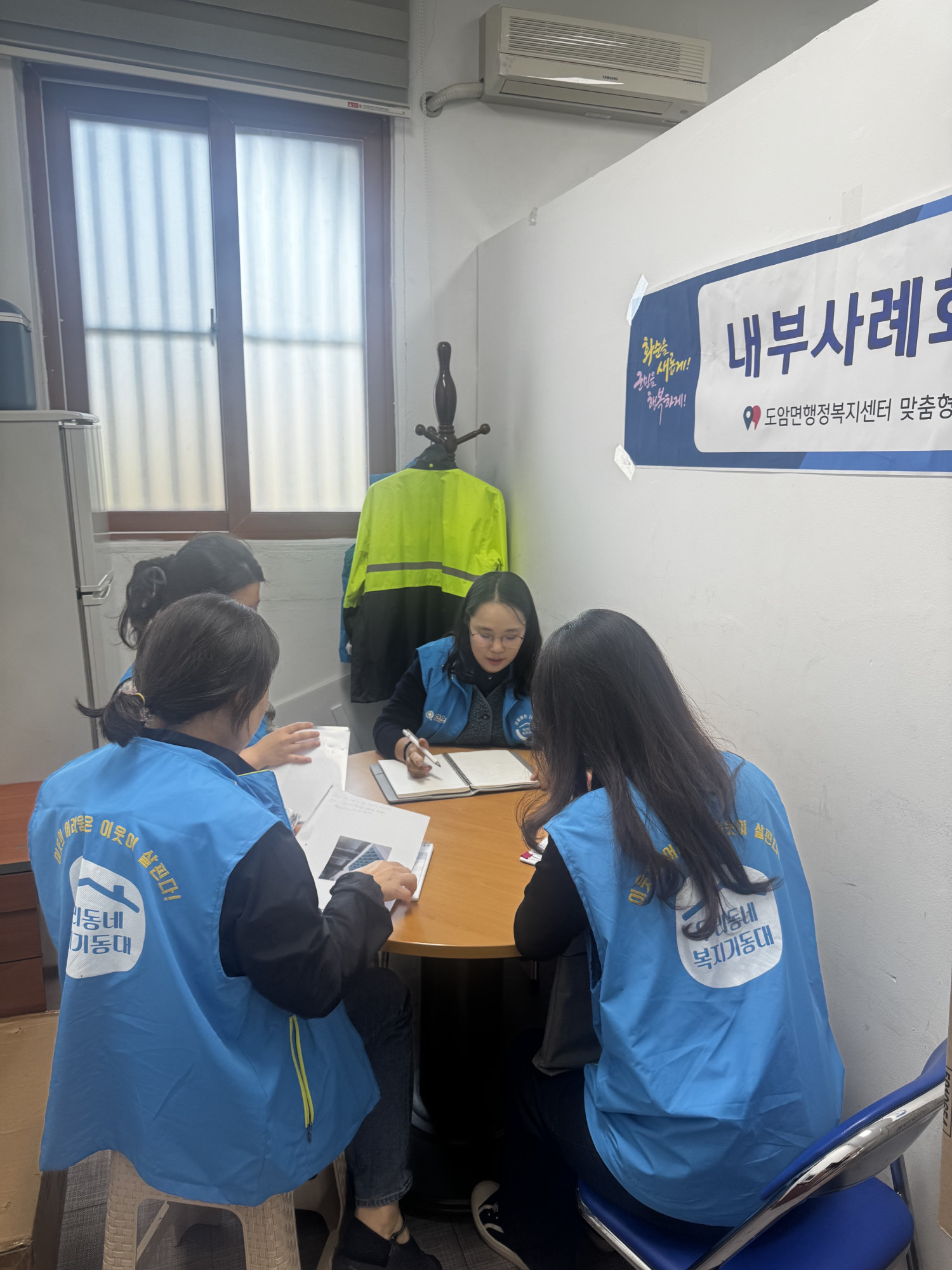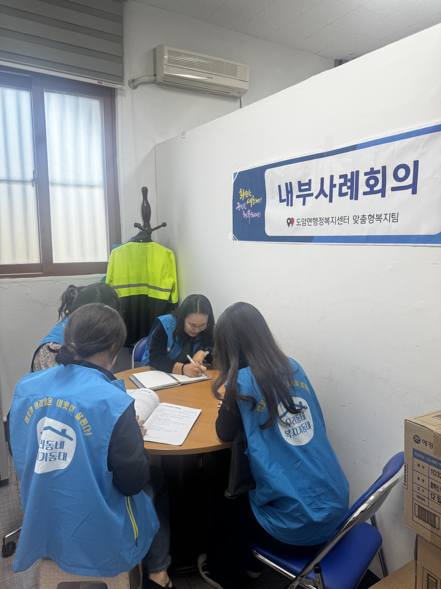 우리동네복지기동대 지원 대상자 선정을 위한 내부사례회의를 개최하였다. 이번 회의에서는 생활불편개선사업 신청 대상자에 대한 현황을 공유하고, 가구별 생활실태 및 위기도 조사 결과를 면밀히 검토하였다. 이를 바탕으로 지원의 필요성과 시급성을 고려하여 대상자의 우선순위를 심의·선정하였으며, 향후 맞춤형 지원계획 수립과 연계 가능한 복지서비스에 대해서도 함께 논의하였다.