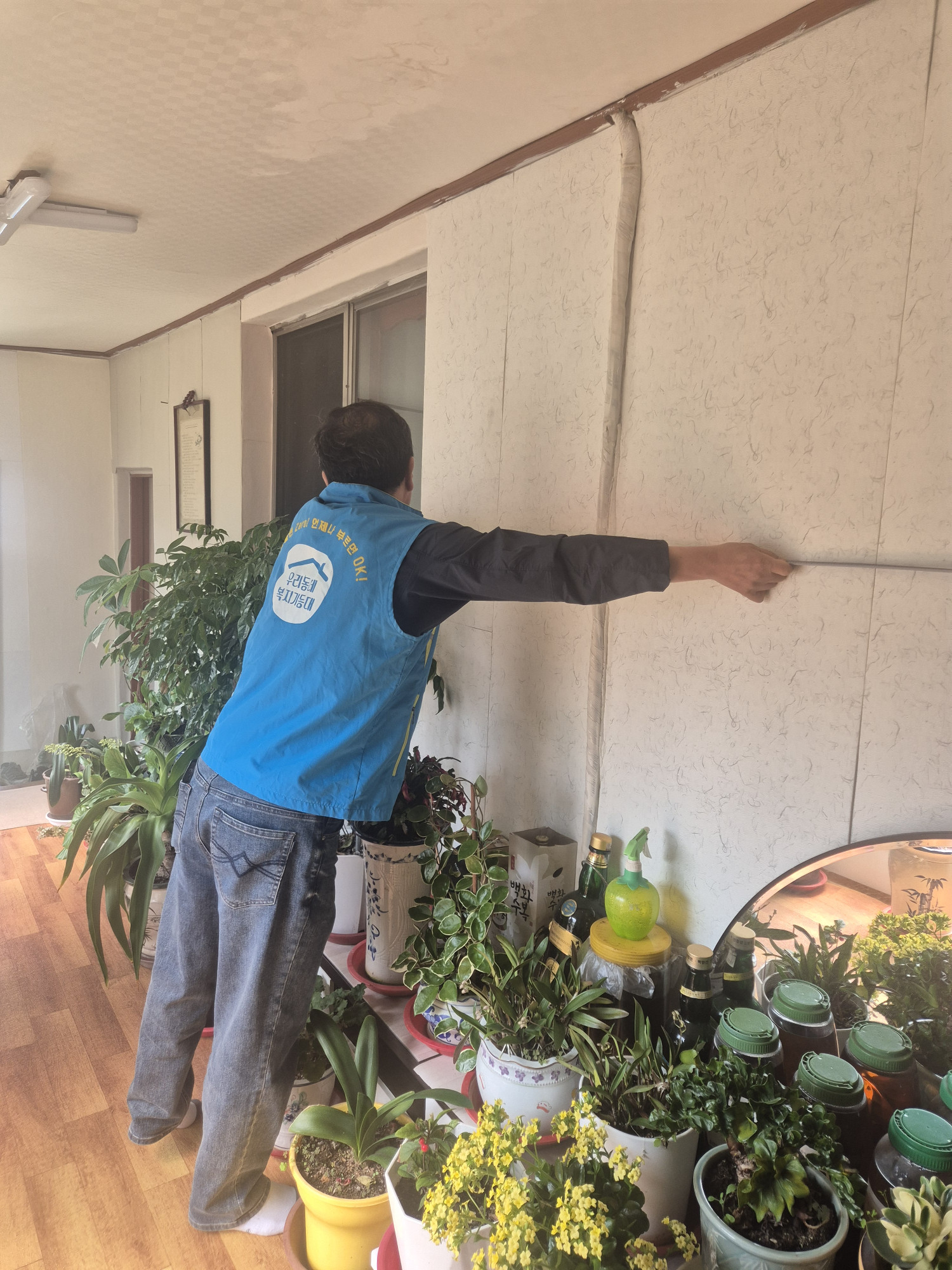 내용: 노인맞춤돌봄서비스 생활지원사조명(형광등) 교체 요청으로 가구 방문시 도배상태 불량하여 도배시공 및 조명교체해 드리기로 함.