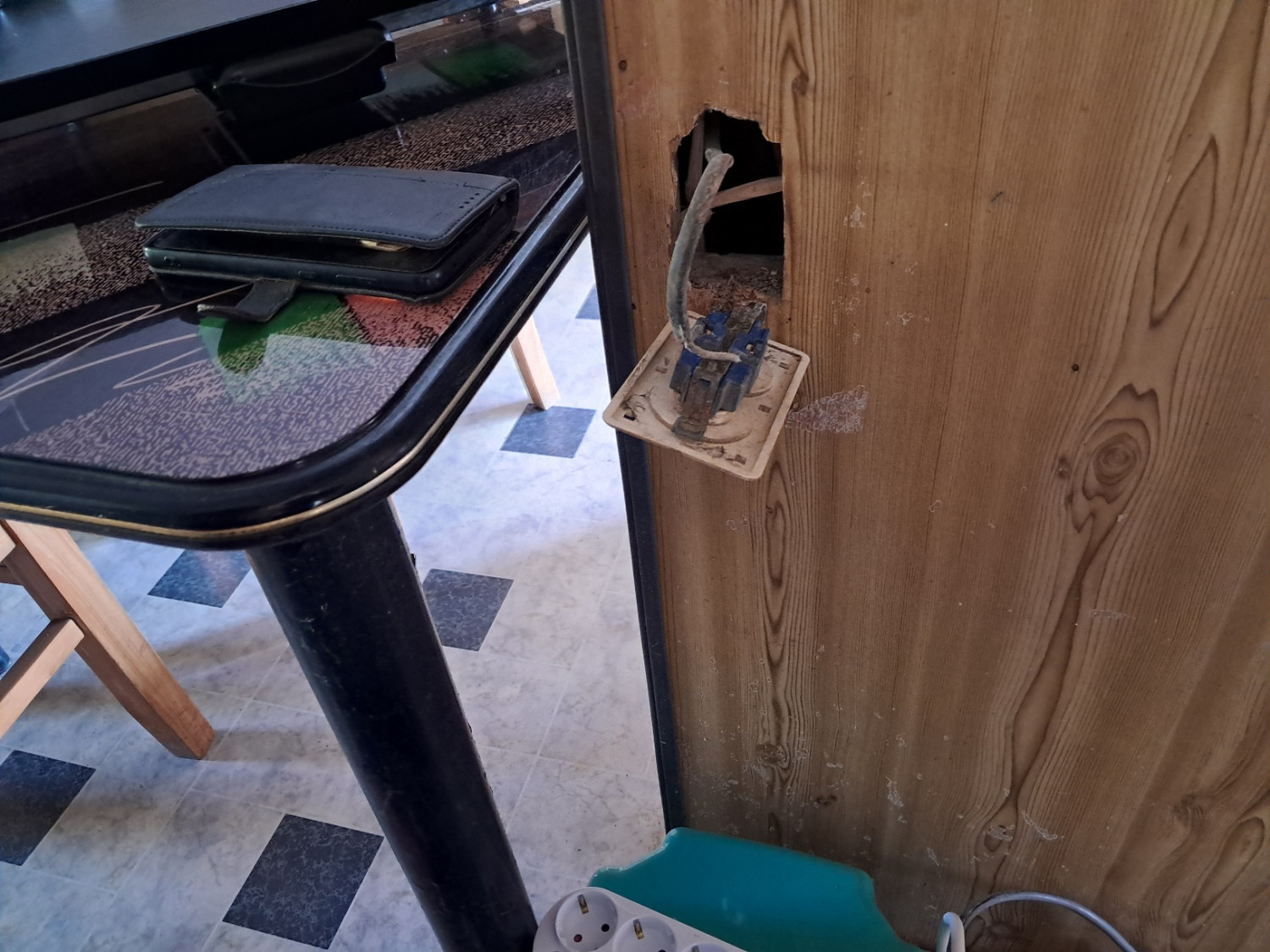 내부가 다 녹슬고 전선도 삭아 있는 상태여서 인근 철물점에서 2구콘센트와 LED전등을 사와서 교체 하였습니다