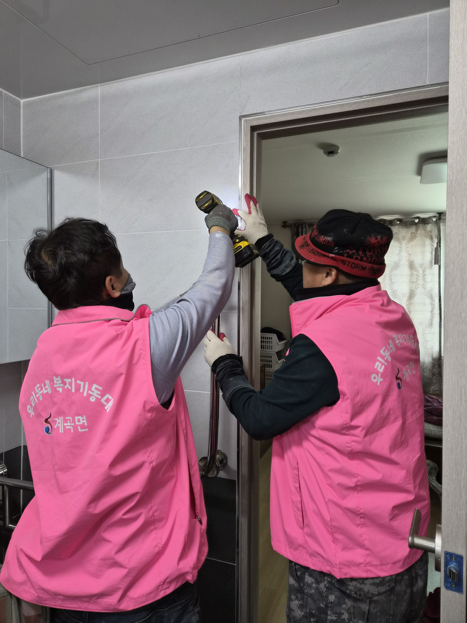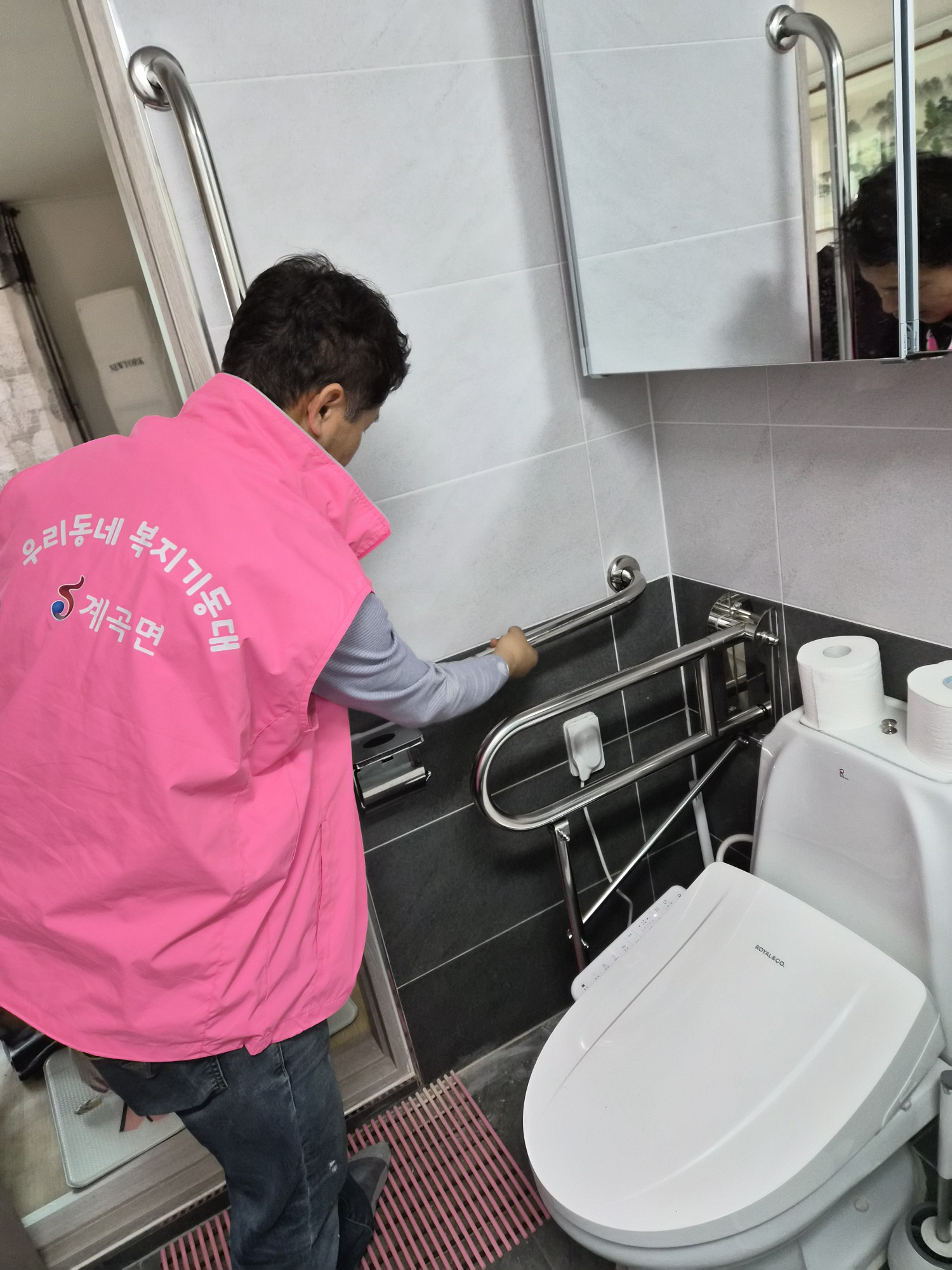 💗계곡면복지기동대 고령 노인부부 화장실 안전 손잡이 설치 완료💗