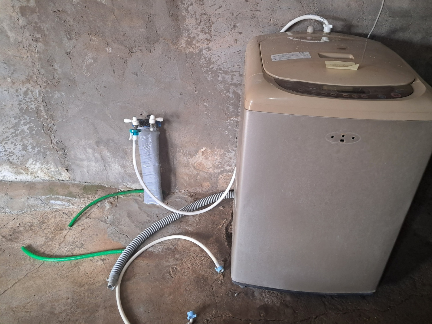 첫번째 70대 독거 남성께 좀 오래된 중고 세탁기지만 탈수기능이라도 쓰시라고, 기부 받아 운반해서 물호스 사다가 연결해드렸어요