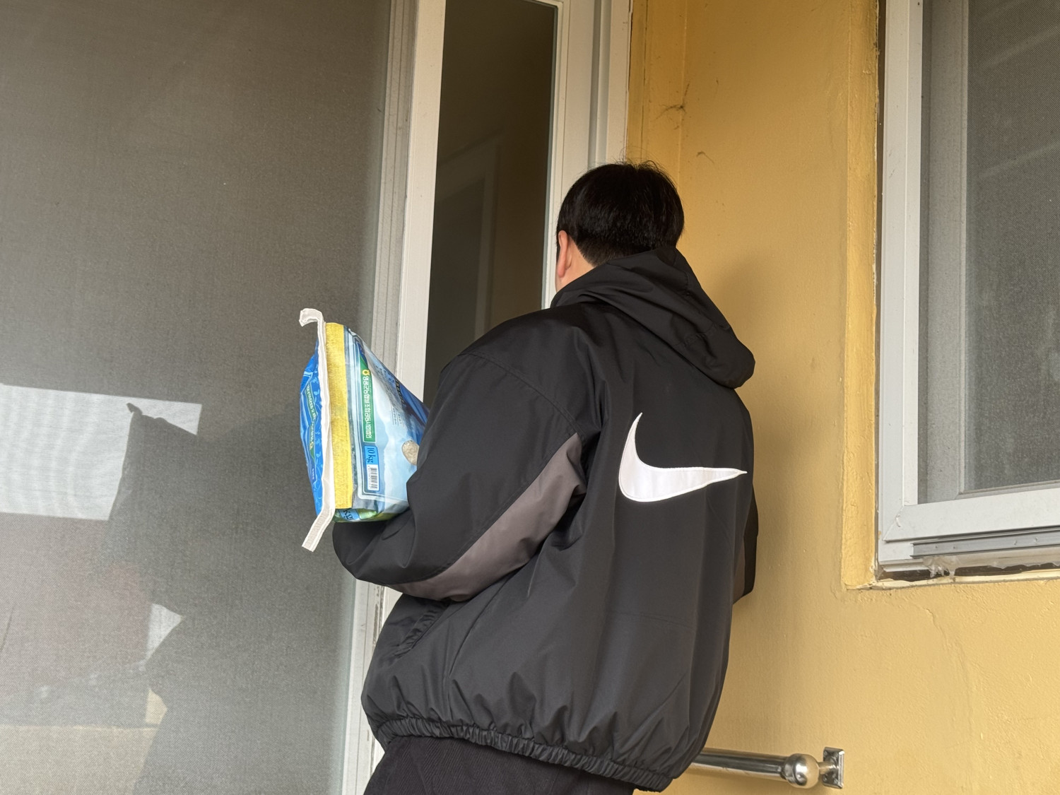 후원물품 양곡10키로 1포, 4명 전달