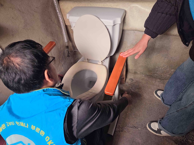 혼자사는 어르신은 실내 낙상사고를 예방하기 위해 안전손잡이까지 추가로 달아드렸습니다.