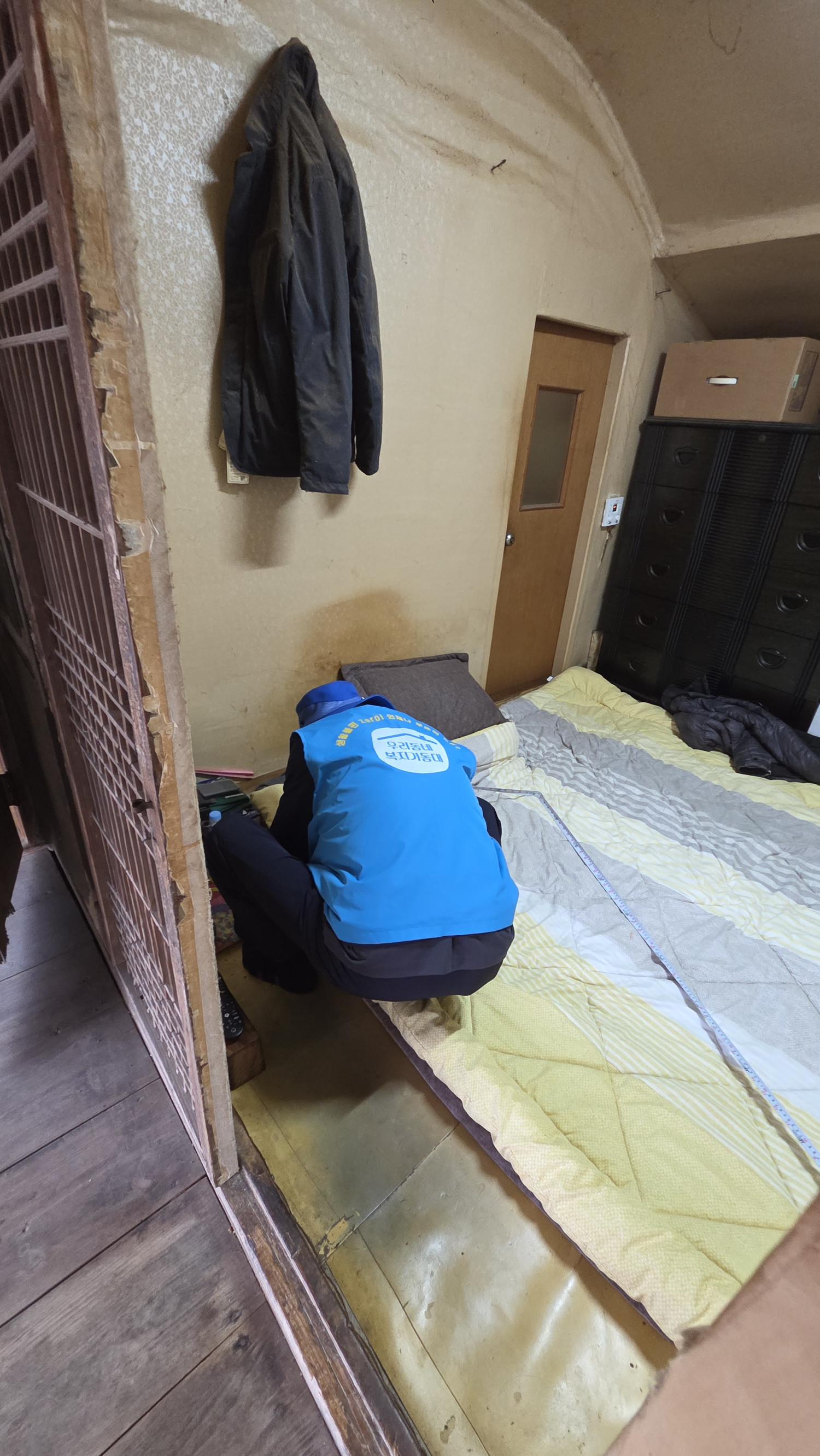 거의 밖을 잘 안나가시고 주로 집안에만 머무신다는 어르신의 방은 오랜시간 방치된듯 도배와 장판의 상태가 좋지않았고 낡은 전기선들도 어지럽게 널려있어 시급히 정비가 필요해보였습니다.