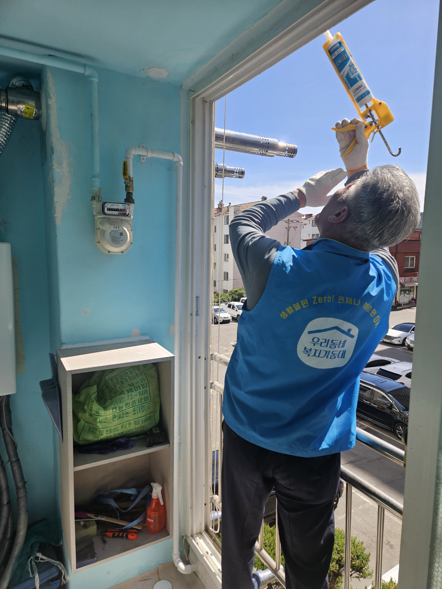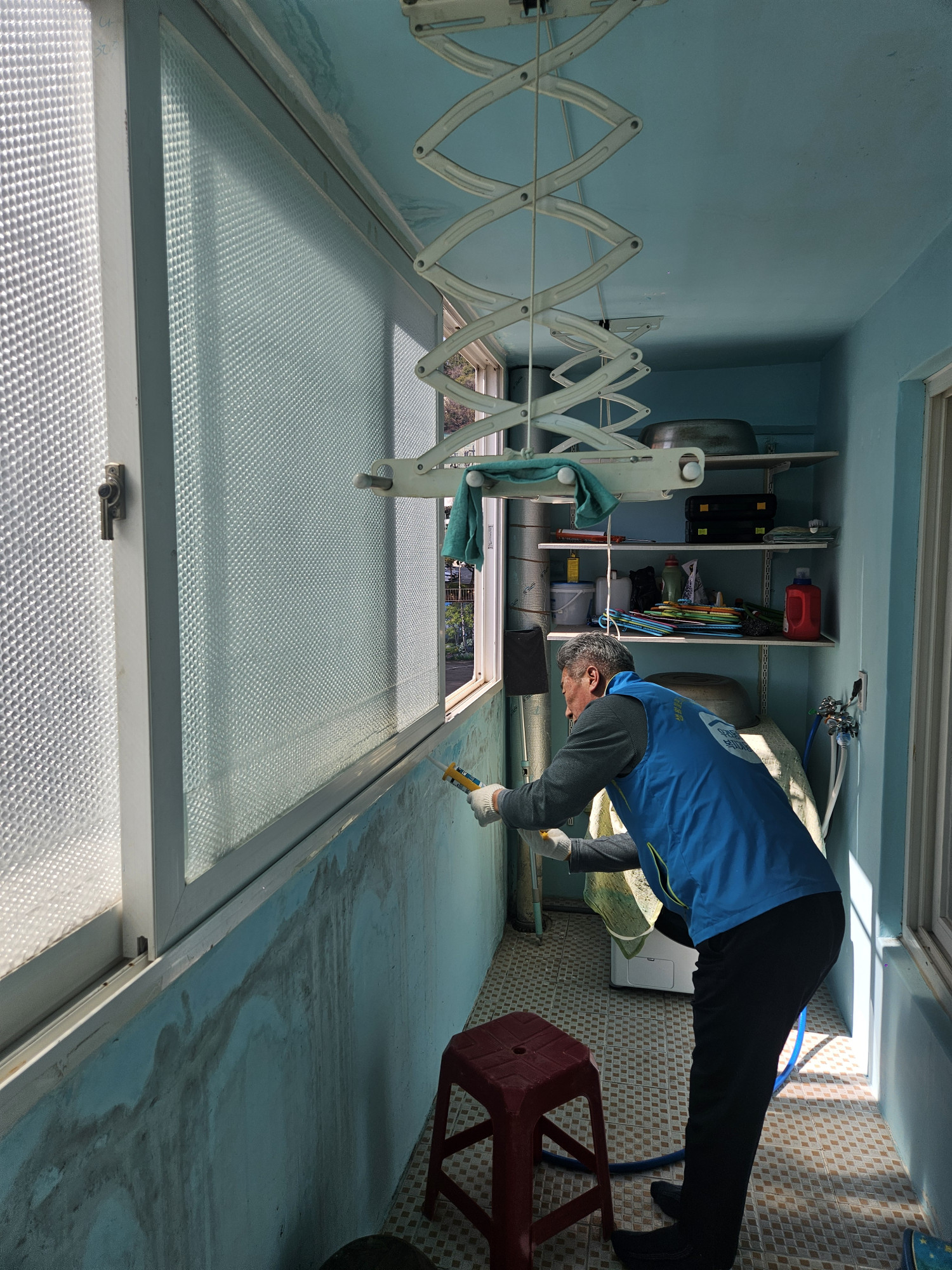 홀로 거주하시는 어르신댁에 방문하여 보니 베란다벽에 물이 새서 물때가 있는 등 상태가 열악한 상황이였습니다. 이에 어르신도 나중에 여름에 비가 많이오면 빗물이 많이 샐까봐 걱정을 많이하셨습니다. 이에 복지기동대가 주거개선 환경을 하기위해 어르신댁에 다시 방문하여 베란다 샷시 방수처리를 하였고 이와함께 낡은 방충망 까지 교체해드렸습니다. 앞으로도 소외되는 이웃이 없도록 복지기동대가 최선을 다하겠습니다!