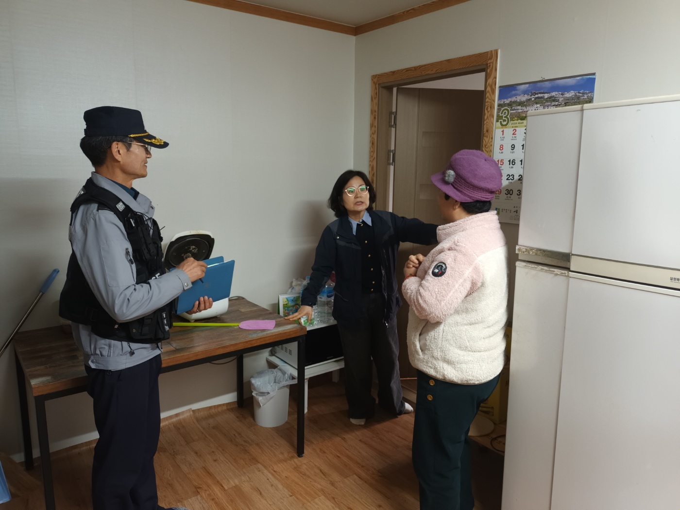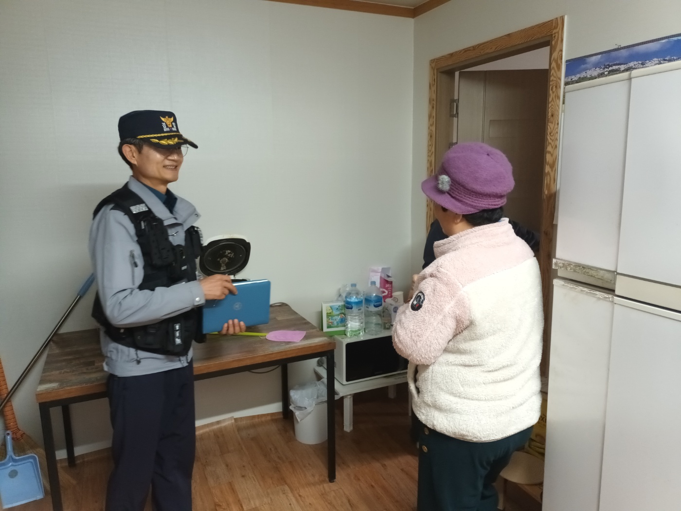 오늘은 황산파출소와 함께 수급자 가정등을 살피고, 생활하는데어려운점은 없는지, 인권보호 등 전반을 상담해드렸습니다. 또 가지고 간위문품도 같이 전달해드렸습니다.