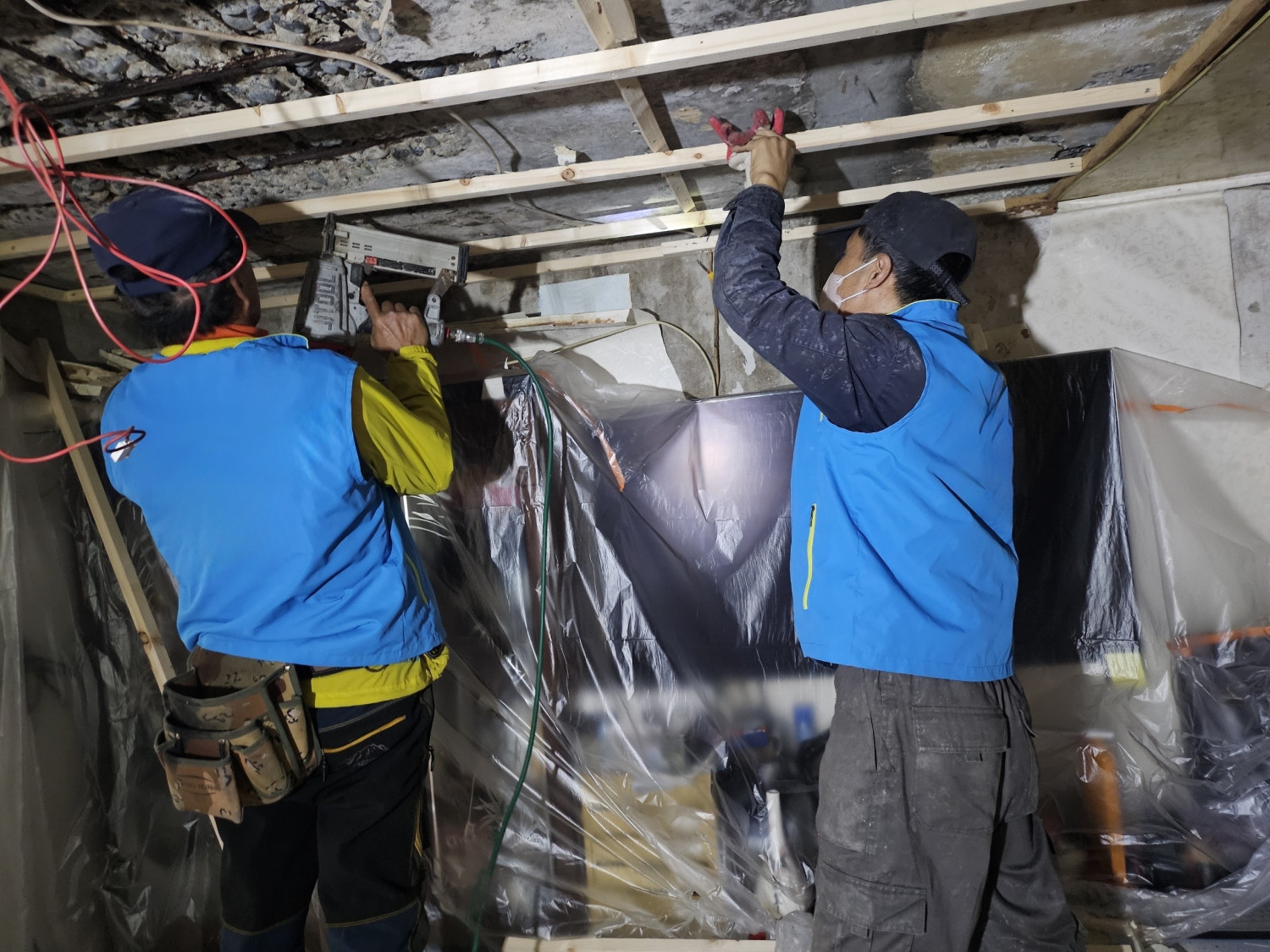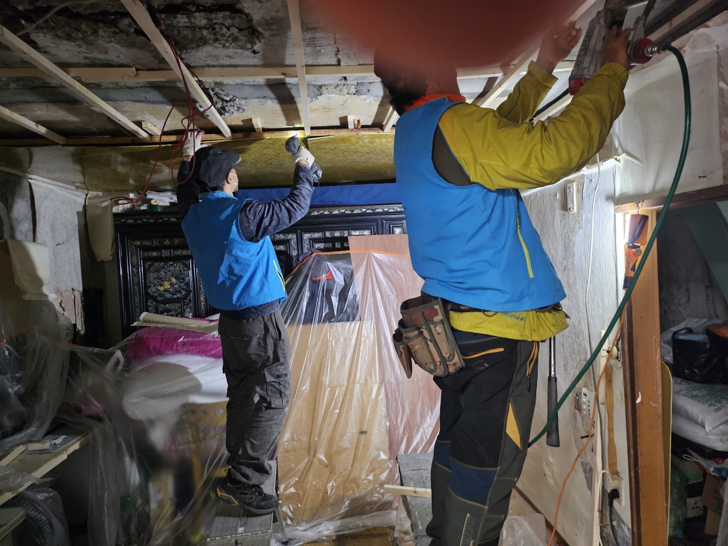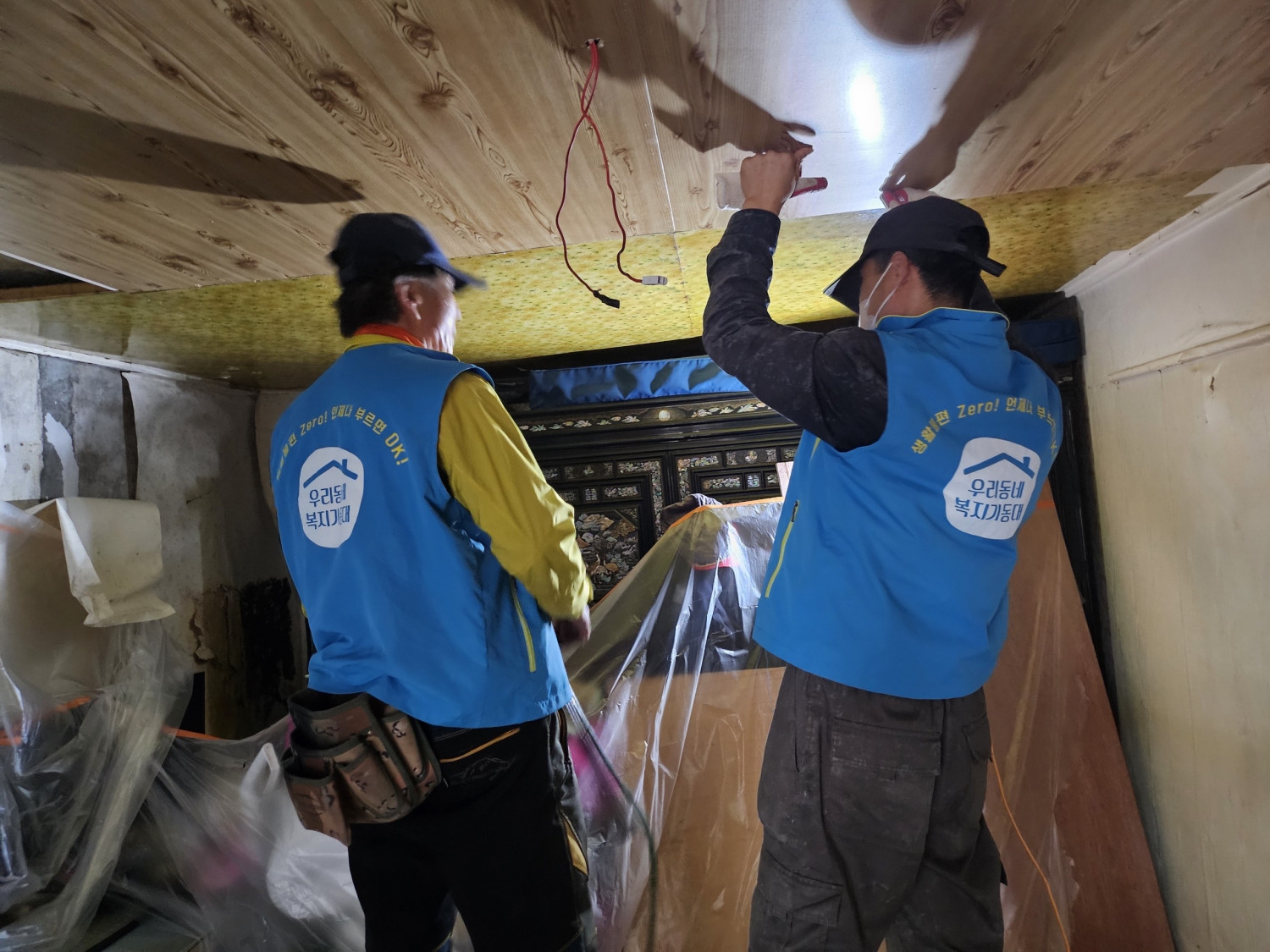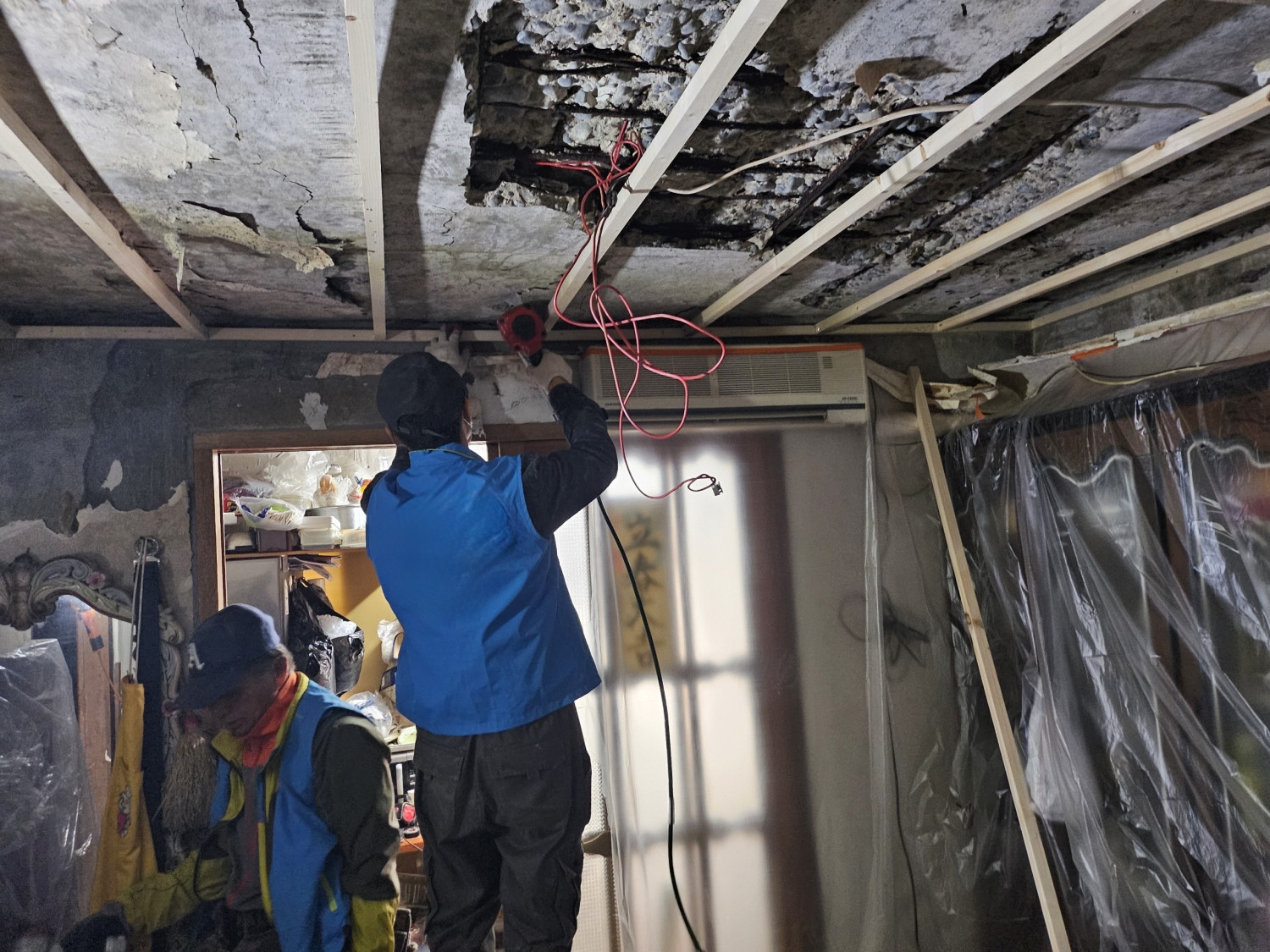 여수시 중앙동 복지기동대가 주거환경이 열악한 가구를 위해 천장 보수 작업을 진행했습니다!