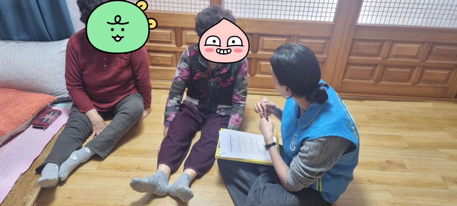 의료 요양 통합 돌봄 대상자들 발굴을 위하여 가정을 방문하며 불편한 상황 및 필요한 복지를 연계하기 위하여 이야기를 들었습니다. 필요한 서비스를 받기 위해 읍,면사무소를 방문하기 어려우신 분들을 위해