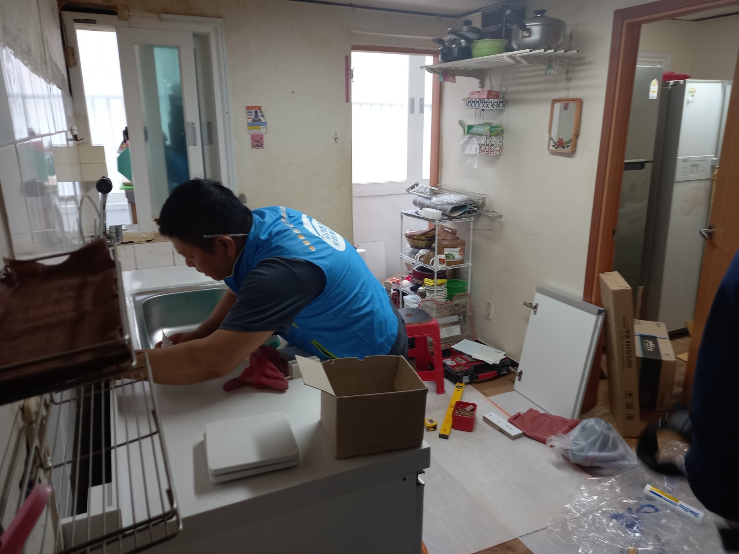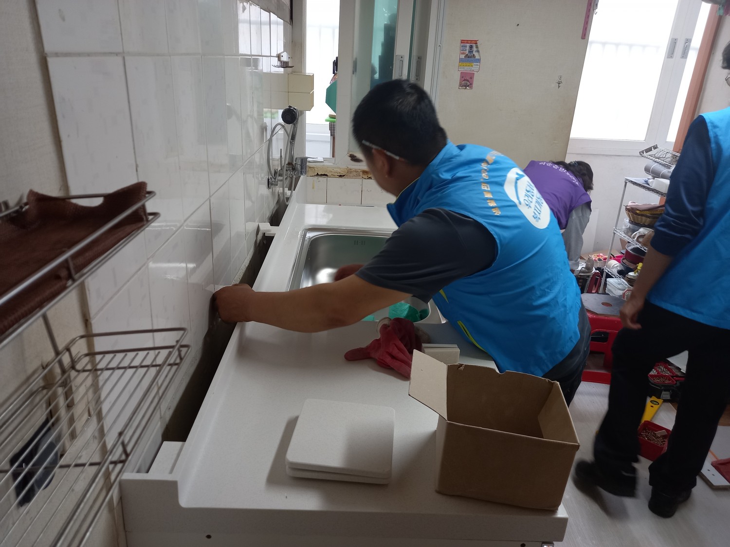 ㅡ활동내용: 20년 이상 사용한 싱크대가 부서지고 누수가 있어 복지기동대가 방문하여 주거환경 개선사업 진행하였습니다.