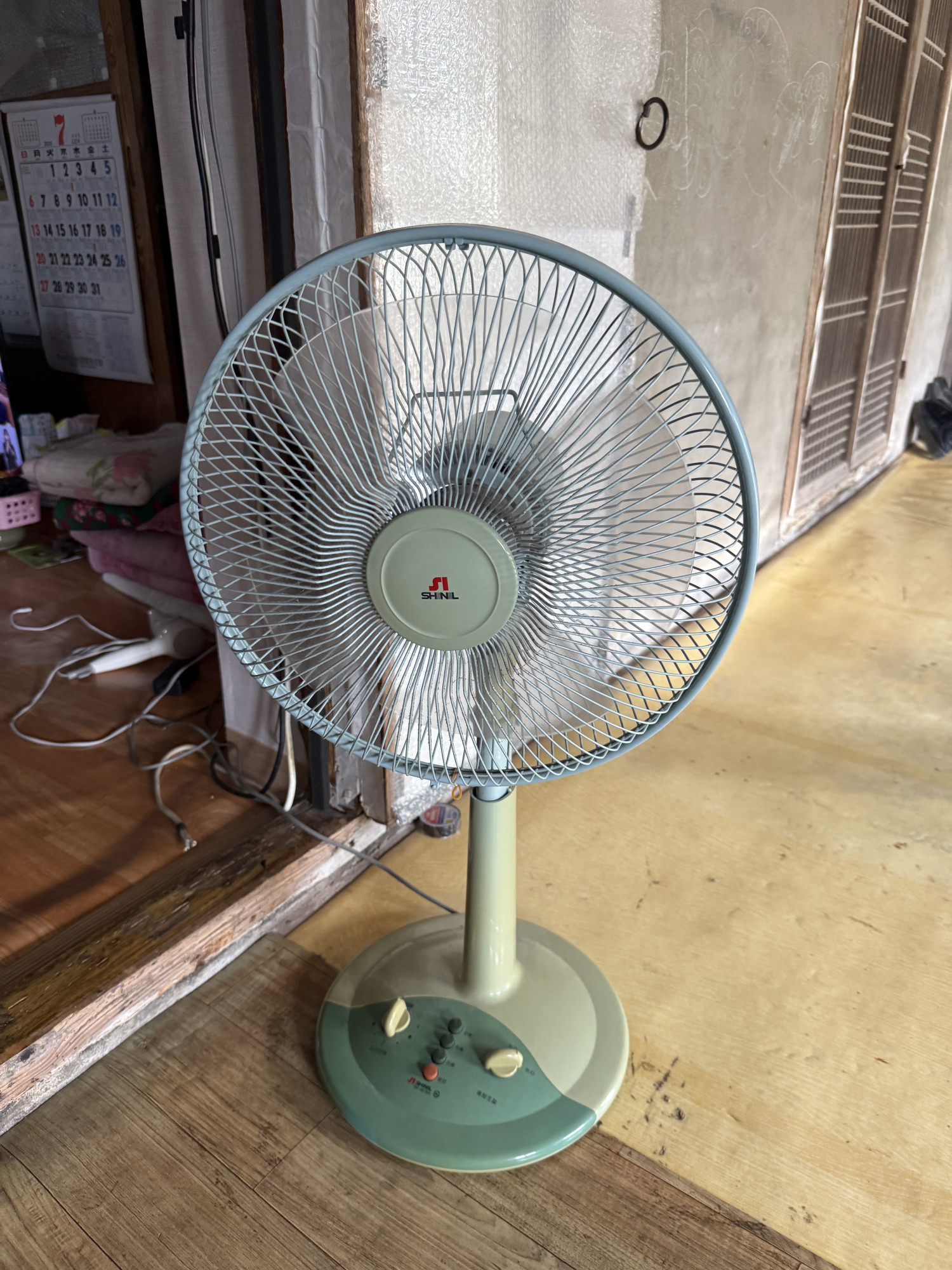 이야기를 들어드리기 위해 집안에 함께 앉았는데, 제조연월이 30년이 된 오래된 선풍기가!