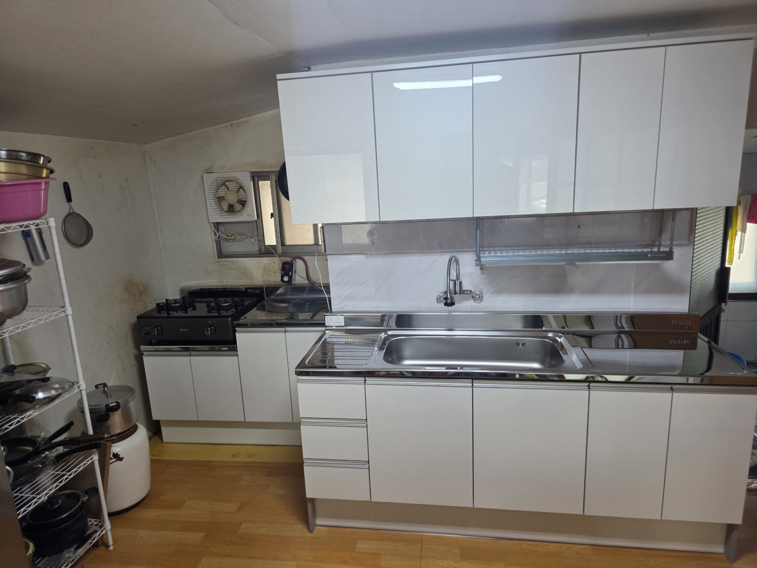 오래된 주방씽크대와 수전은 사용에