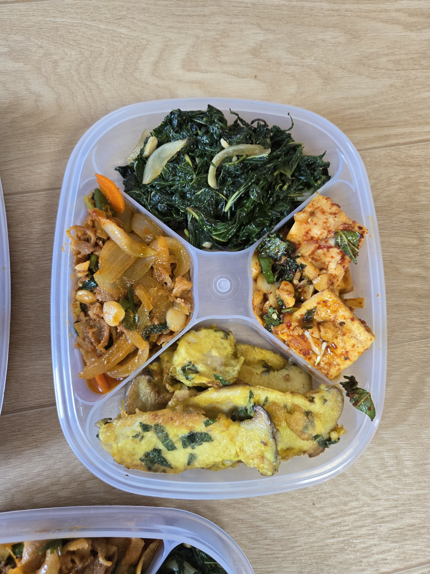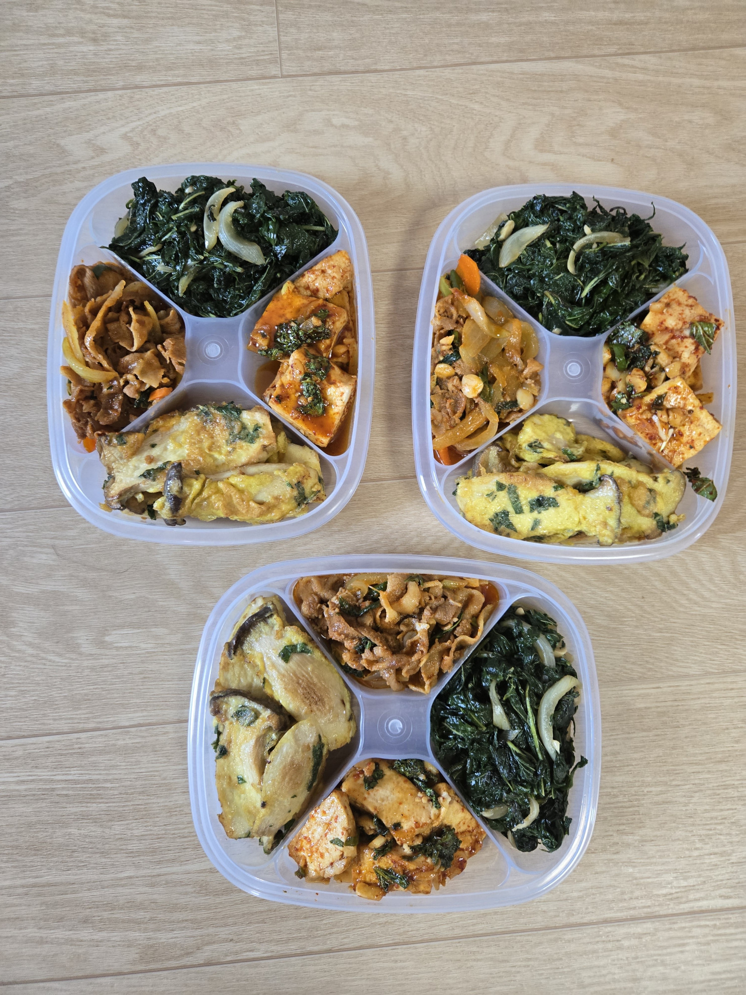 이번주 반찬은 두부조림, 깻잎무침, 대패삼겹살볶음, 새송이 버섯전입니다☺️☺️