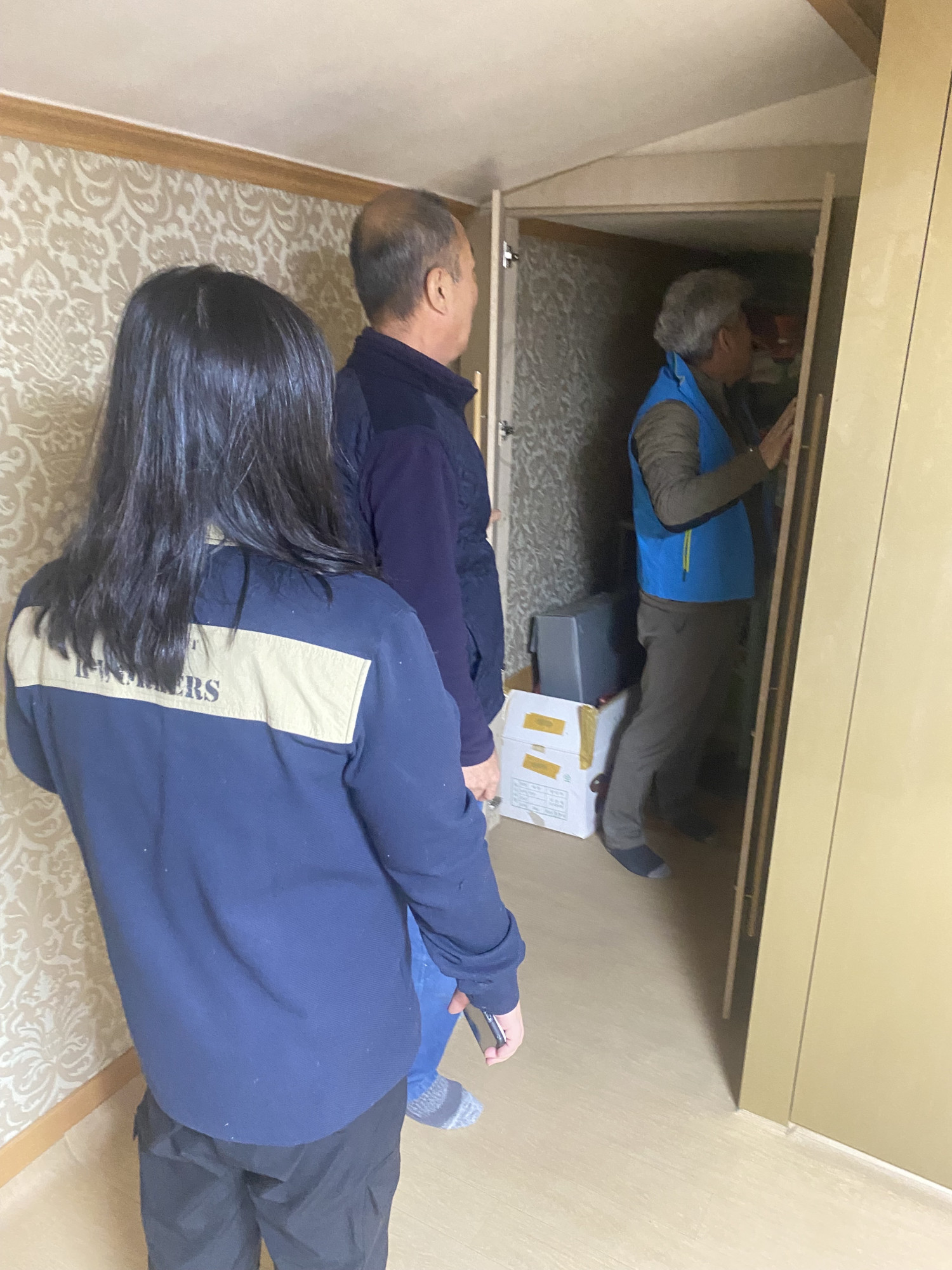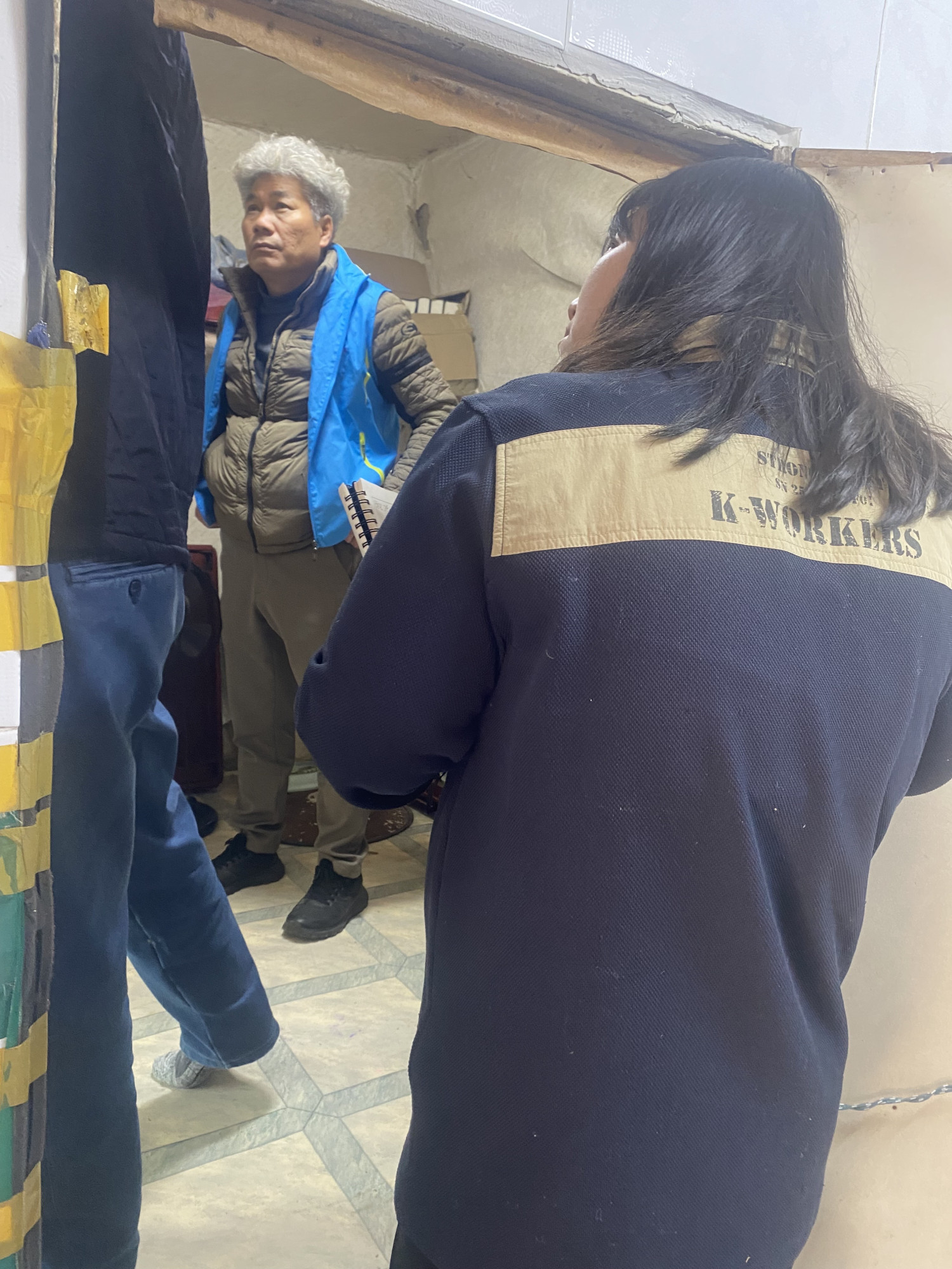 위험하고 미끄러운 외부 화장실을 안전하게 탈바꿈하기 위해서 복지기동대와 민간 전문가가 함께 방문하였습니다.
