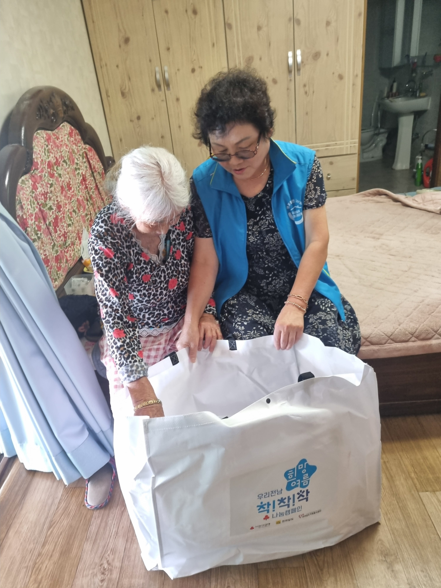 여름철 폭염대비 취약계층의 건강을 위해 배부된 여름나기키트를 생활지원사와 복지기동대원들이 대상자집을 직접 방문하여 전달하였다. 아울러 잇따른 폭염으로 인한 온열질환 예방을 위한 건강수칙을 홍보하고, 주거환경을 점검하였다. 대상자들은 "매일 밤 더워서 힘들었는데, 시원한 여름이불 덕분에 한결 편하게 잘 수 있겠네요. 정말 큰 도움이 됐습니다."라고 답해주셨습니다.