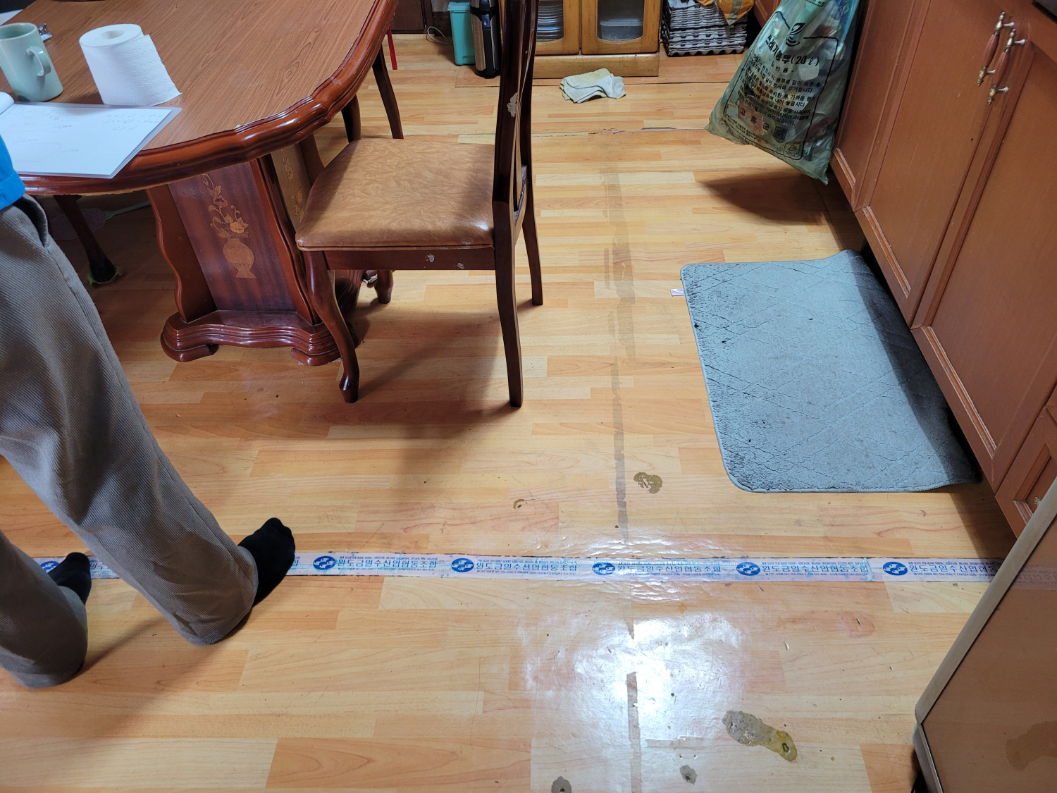 - 장기간 사용으로 마모된 도배 및 장판 상태 확인