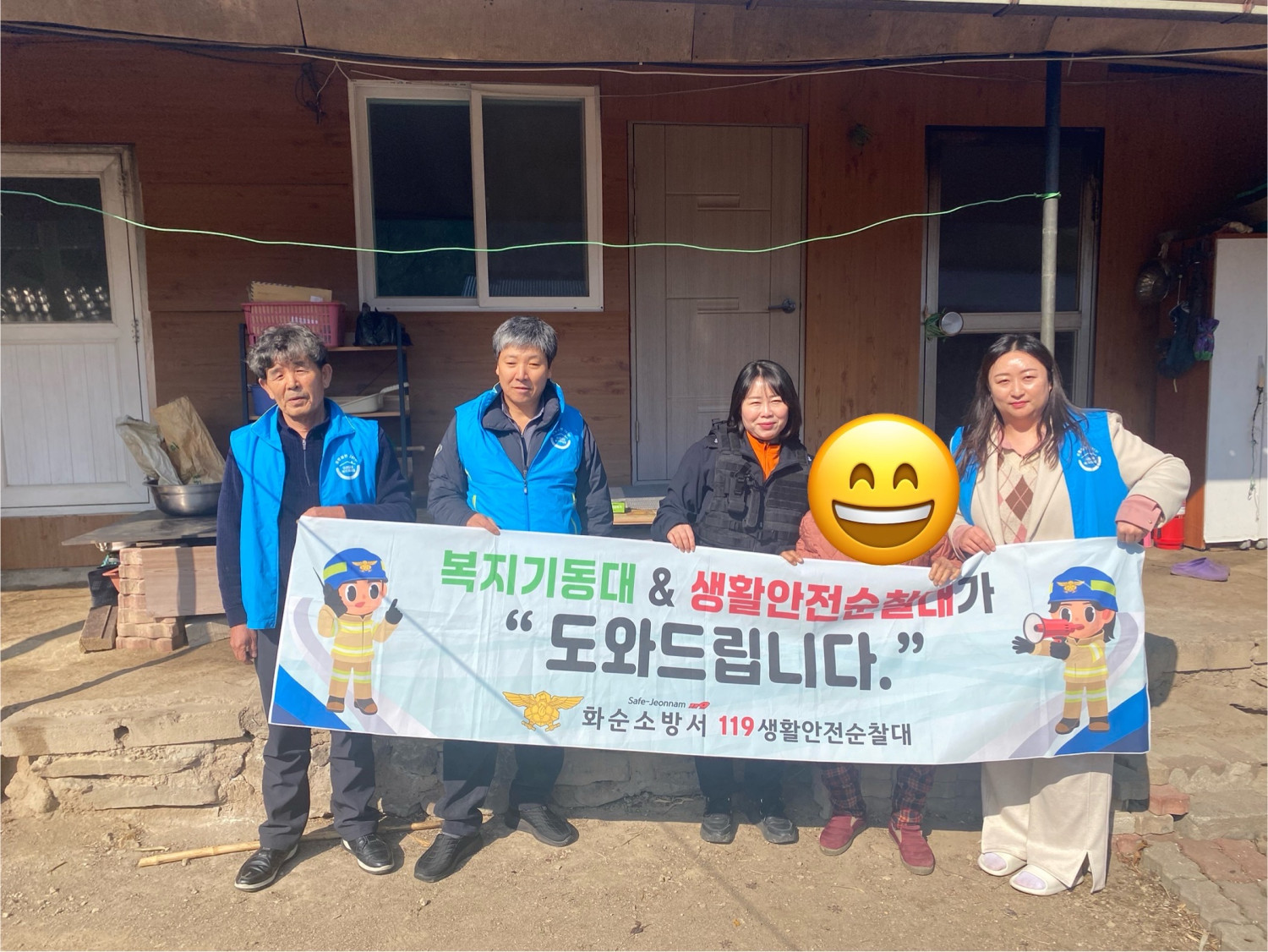 화순군 한천면 복지기동대와 119 생활안전센터가 합동으로 동절기 취약계층 집중 점검을 하였습니다. 낙상예방교육 및 화재 예방 교육을 실시하고 소화기, 연기감지기, 산소발생마스크, 미끄럼방지매트로 구성된 안전꾸러미를 배부하였습니다.