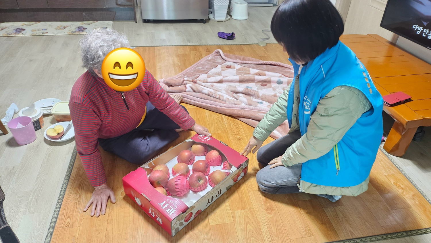 한천면 복지기동대와 어르신지킴이단이 협력하여 독거노인 가구에 방문하였습니다. 어르신들께 위문품(사과)을 전달하고 현재 생활실태, 건강상황 등 꼼꼼하게 안부를 살폈습니다.