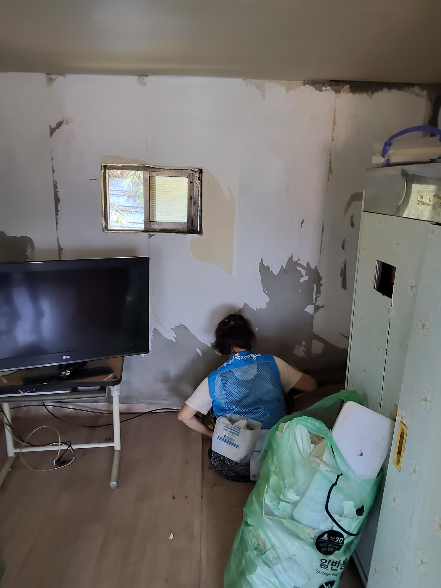 오래되고 낡은 벽지로 인해 위생적으로 걱정되는 공간에서 생활하시는 모습을 보며