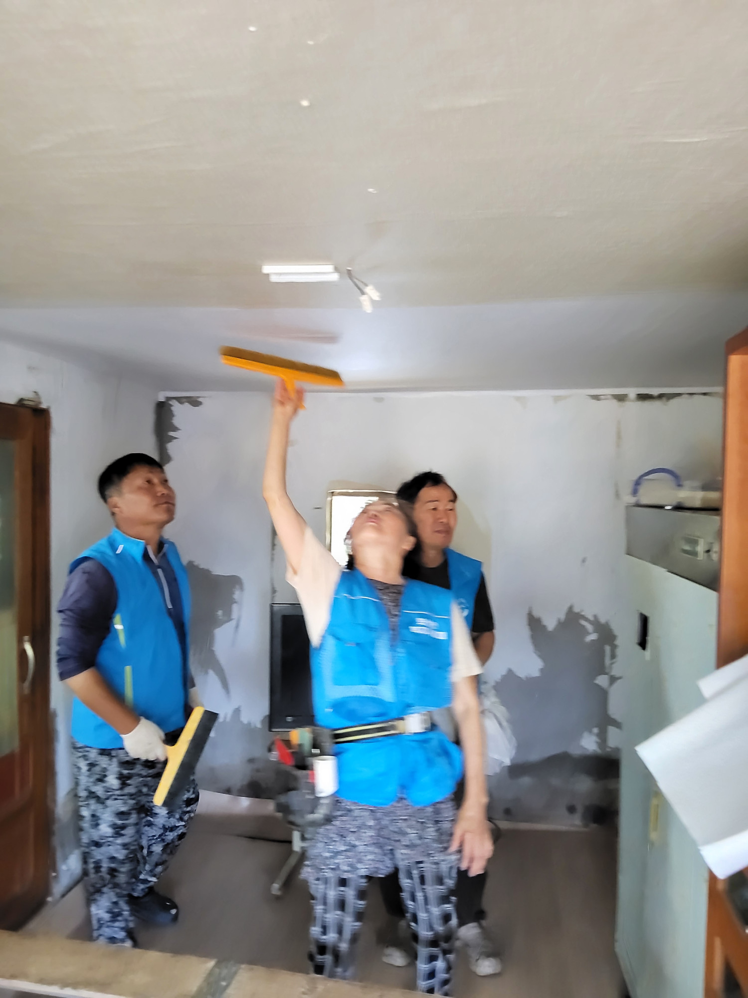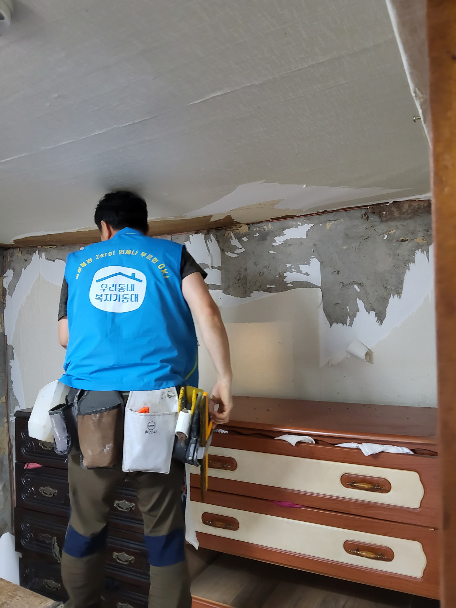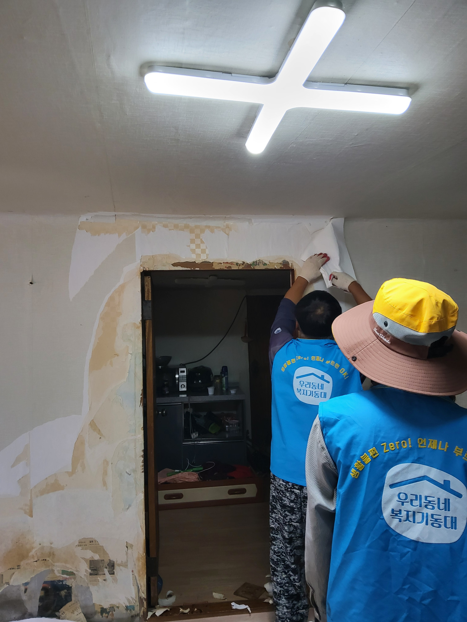 우리 복지기동대가 팔을 걷어붙이고 정성껏 벽지를 새로 시공해드렸습니다!