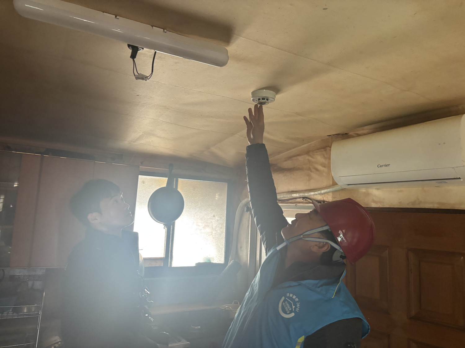동절기 위기가구에 방문해서 안전꾸러미(소화기, 산소마스크, 미끄럼방지매트 등)를 지원해드리고 화재경보기 작동 여부 및 전기콘센트 노후점검 등 알차게 점검하였습니다.