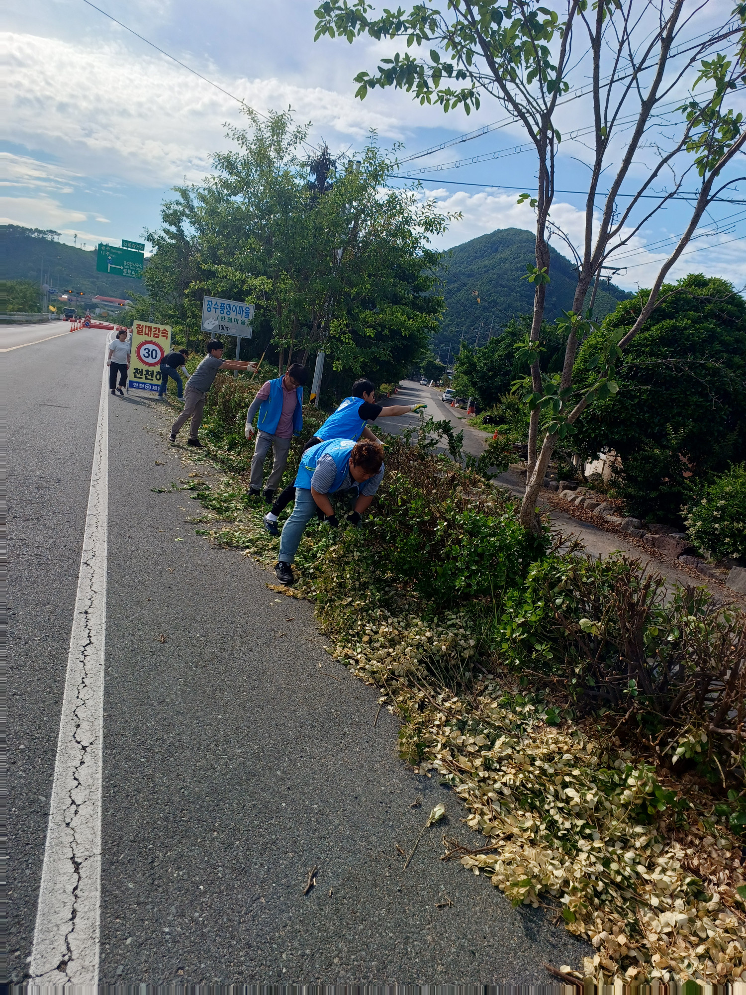 도로 주변 잡초제거와 나무더미 청소완료~~