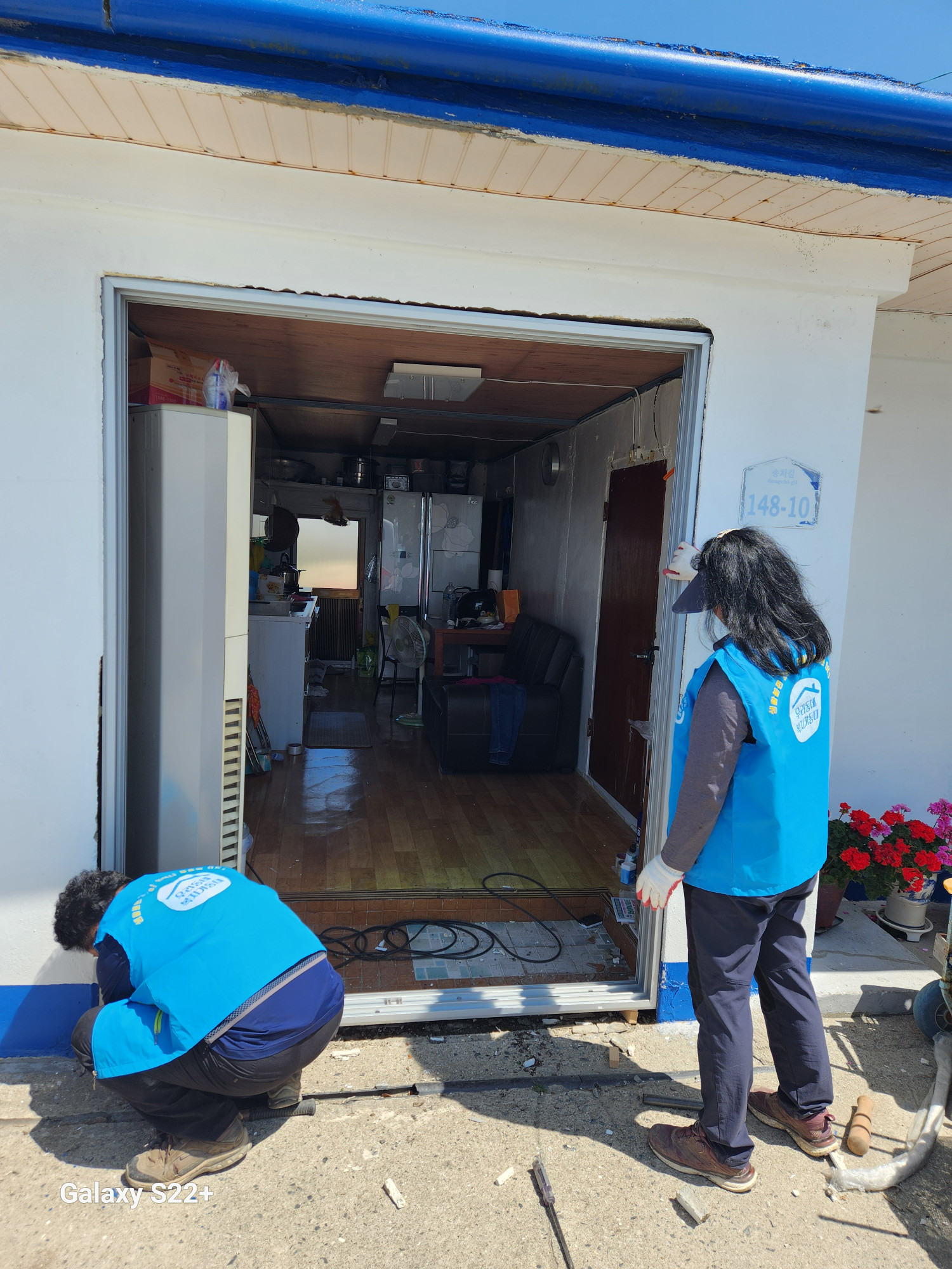 두번째 가구는 바닷가와 맞닿아 있는 곳으로 다가올 장마와 태풍 그리고 겨울의 세찬 바람에 대비 해 오래되고 낡은 현관문을 튼튼한 샷시문으로 바꿔 드립니다.