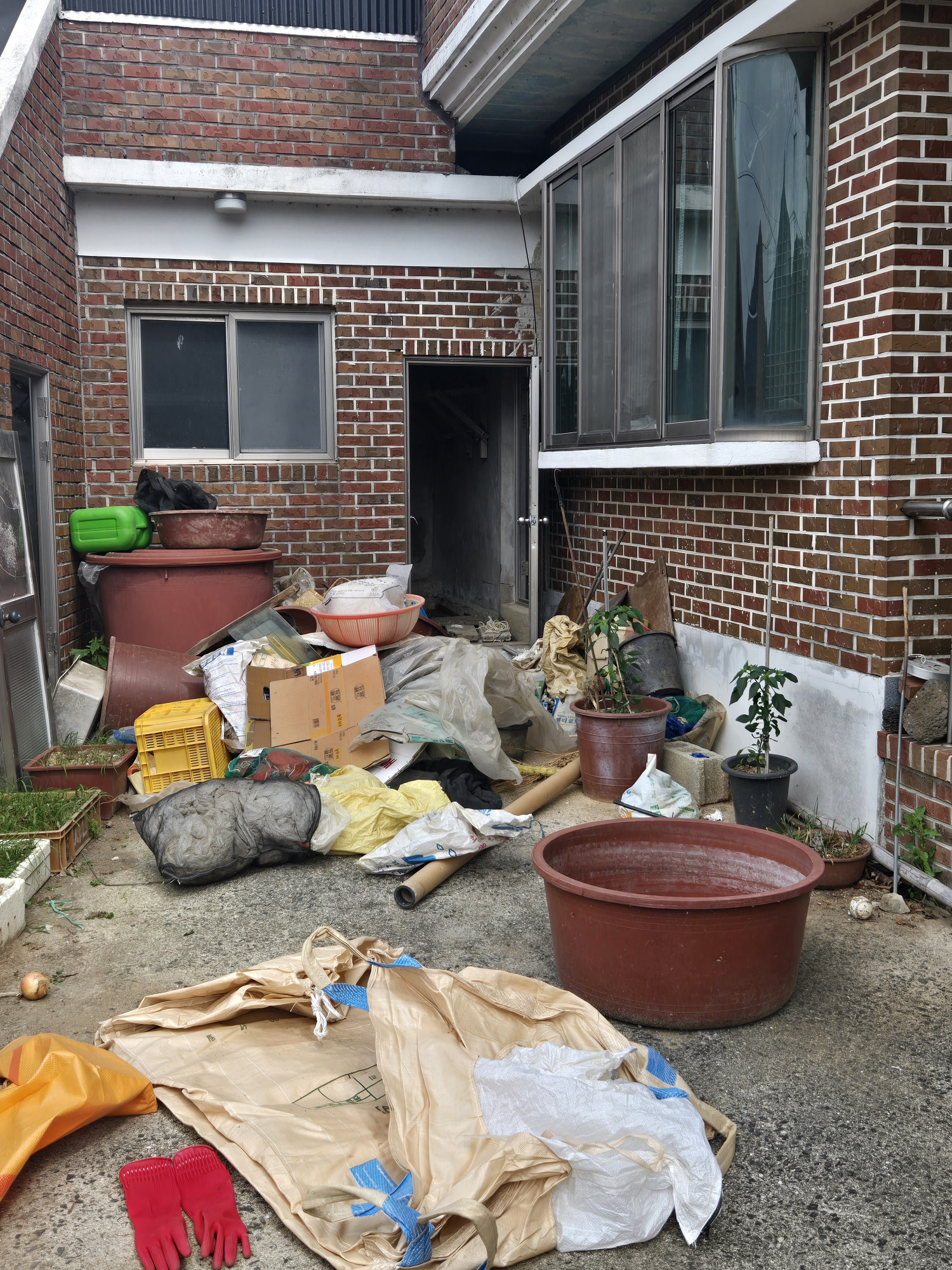 어르신께서 몸이 안 좋으셔서 집 안팎을 신경쓰기에 어려움이 있어 마당 및 집안 곳곳에 짐들이 많이 쌓이고 악취가 배어 있었는데요~
